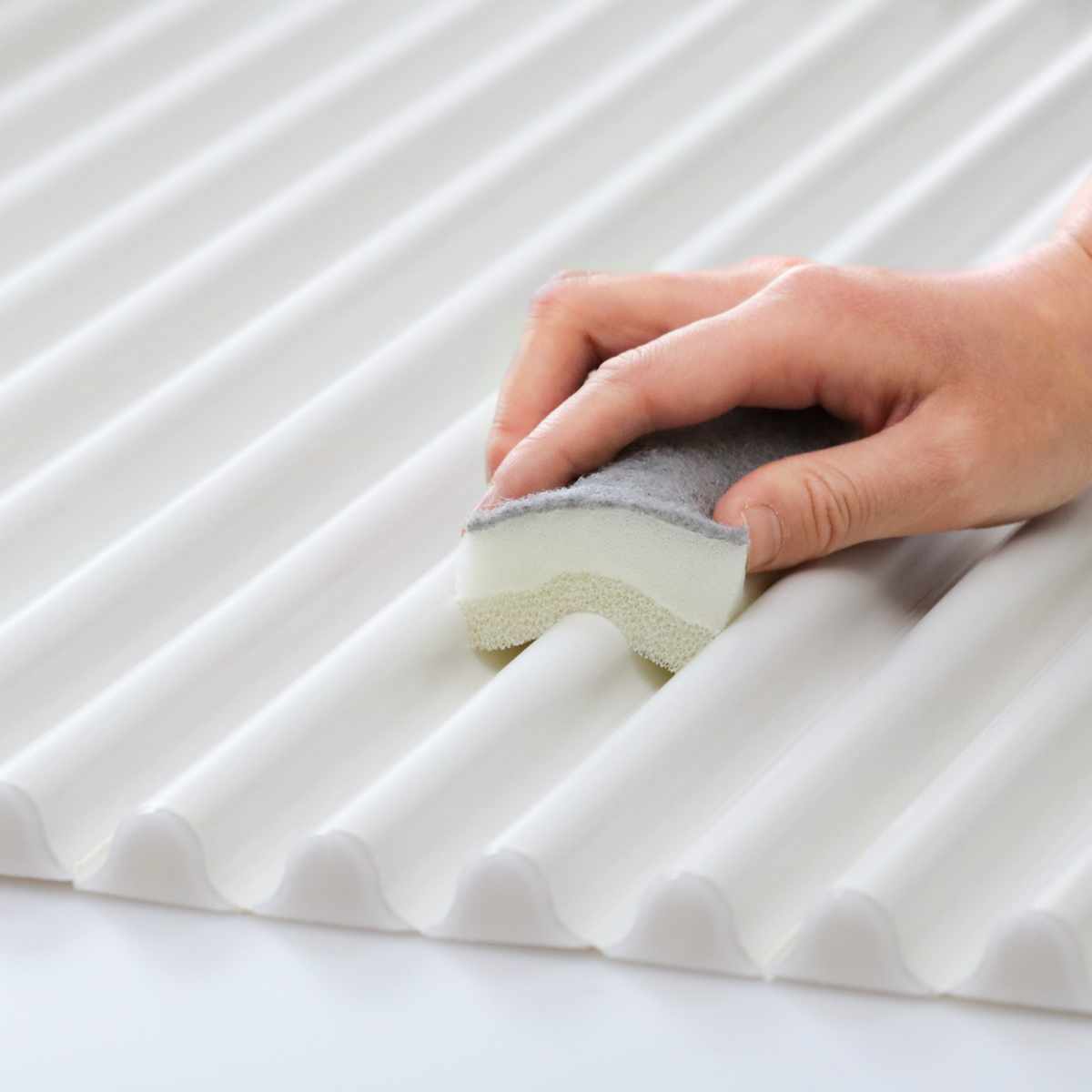 やわらかいスポンジや中性の浴室用洗剤を使用して、溝にそって軽く洗って水を流せばお掃除が完了。お手入れが簡単でいつでも清潔にご使用いただけます。