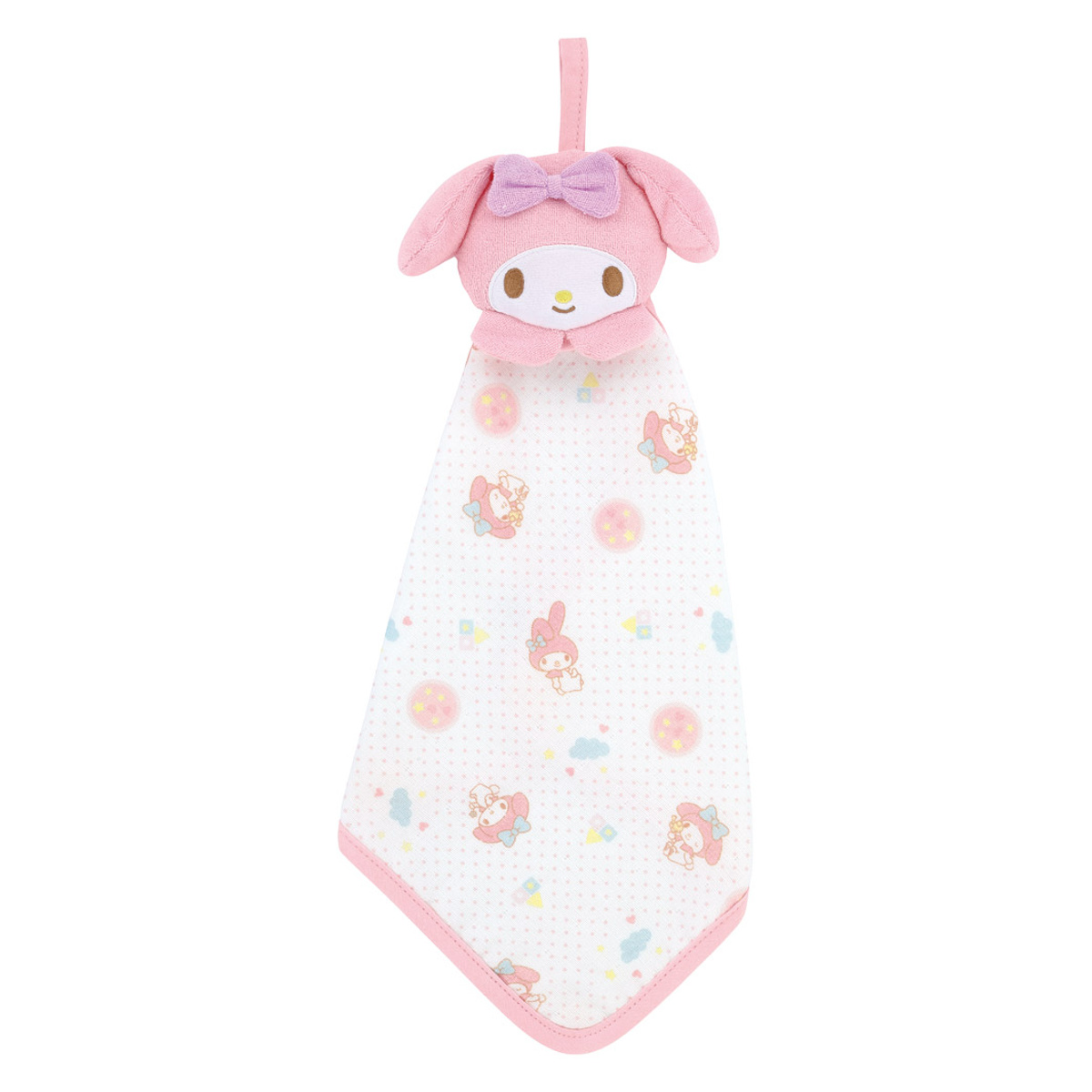 ハンドタオル マスコット付き タオル 赤ちゃん キャラクター マイメロディ ( ループ付きタオル ループ付きハンドタオル 綿100% ガーゼ パイル ループ付き ガーゼハンカチ タオルハンカチ ハンカチ 綿 コットン 吸水 速乾 かわいい )