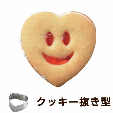 クッキー型 抜き型 スタンプクッキー にこにこフェイス はぁーと ステンレス製 ( クッキーカッター 製菓グッズ 抜型 ハート 手作り 製菓道具 お菓子作り プレゼント クリスマス )
