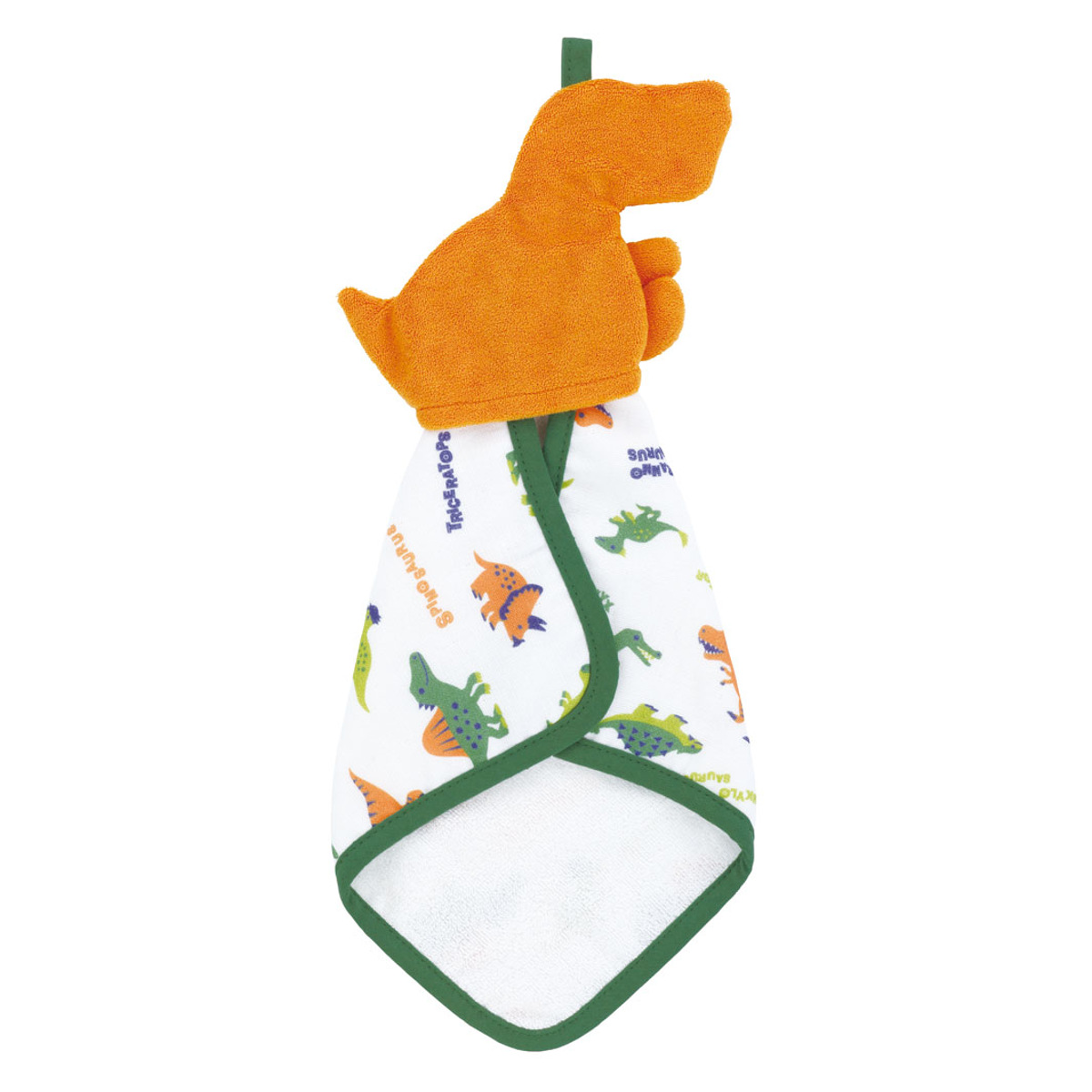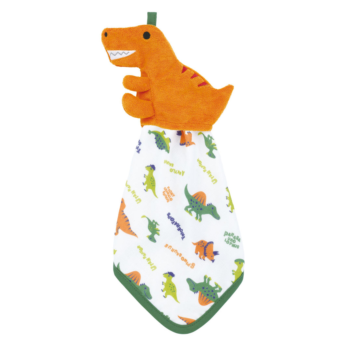 ハンドタオル マスコット付き タオル 赤ちゃん ティラノサウルス ( ループ付きタオル ループ付きハンドタオル 綿100% ガーゼ パイル ループ付き ガーゼハンカチ タオルハンカチ ハンカチ 綿 コットン 吸水 速乾 かわいい )