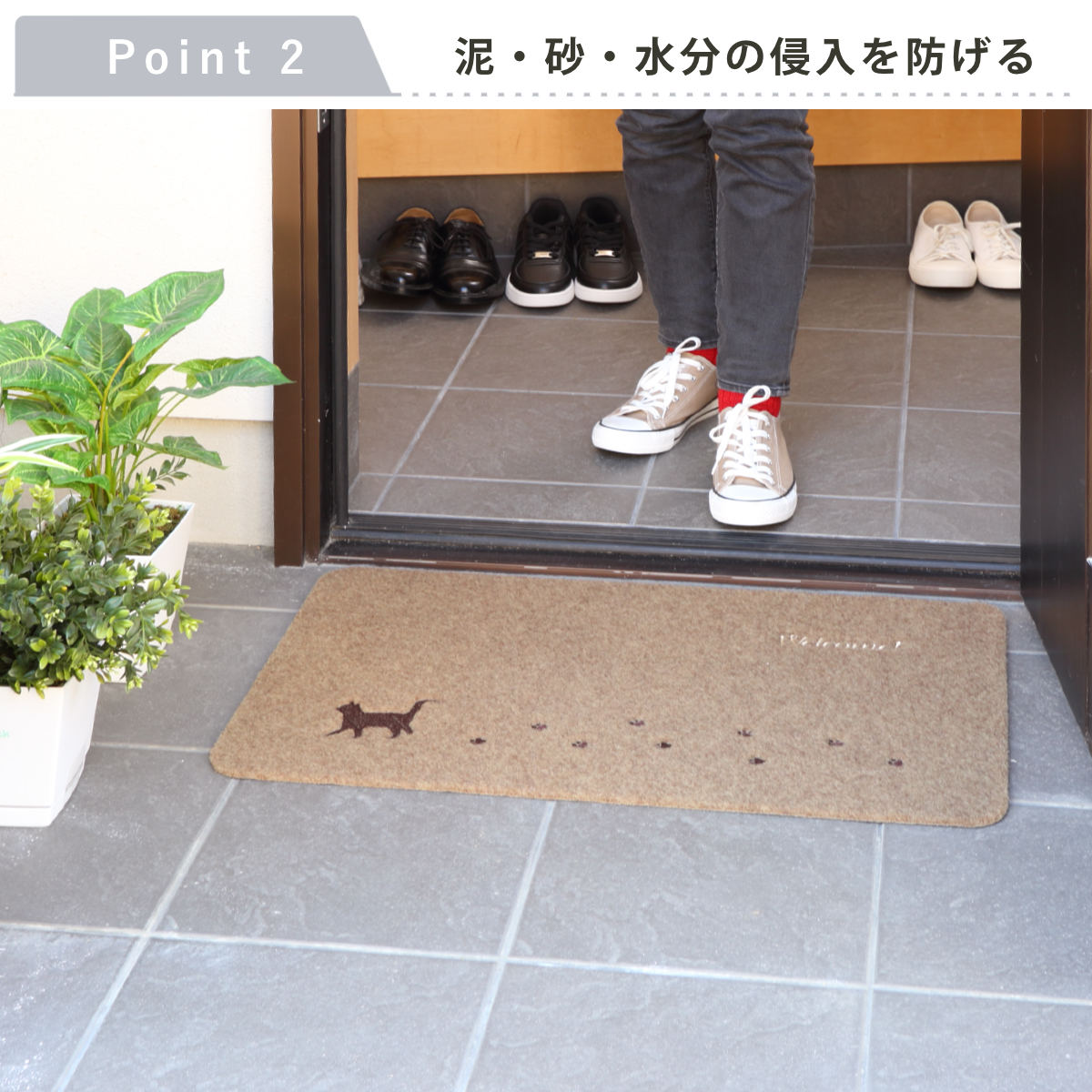外からの汚れをしっかりキャッチ。玄関のキレイを保ってくれます。