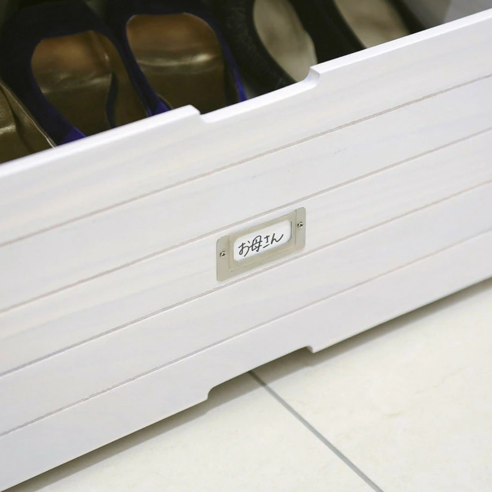 中身の判別に便利なネームプレート付きです。家族の名前や、靴の種類などを書いておけば、一目で分かるので迷うことなく便利です。