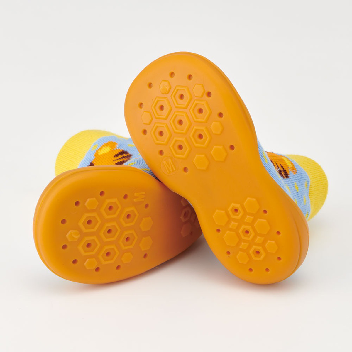 ●シューズの上部は靴下のように柔らかく伸縮性があり、赤ちゃんの足に優しくフィットします。