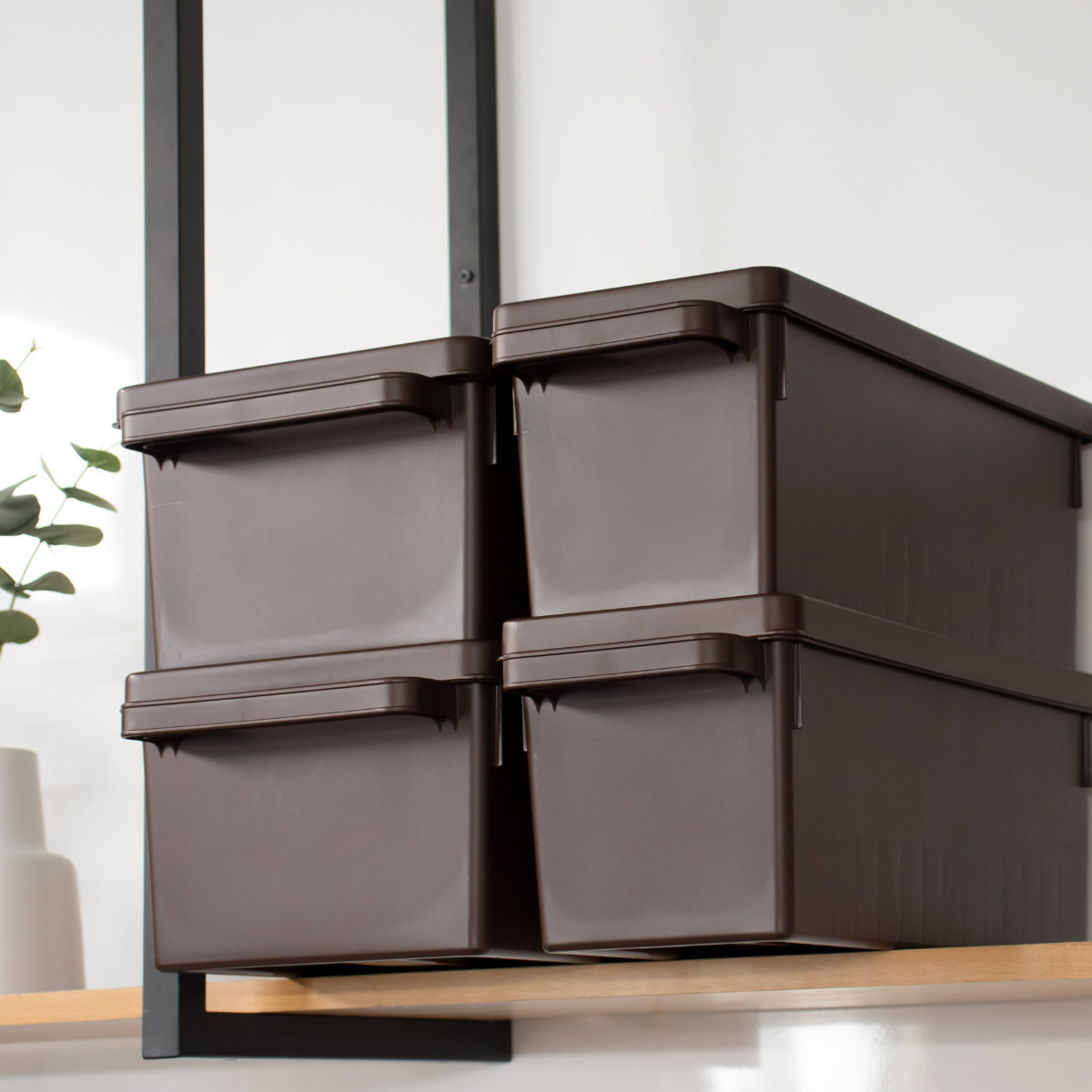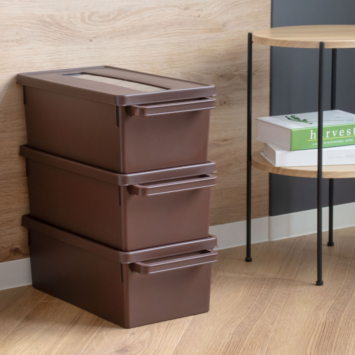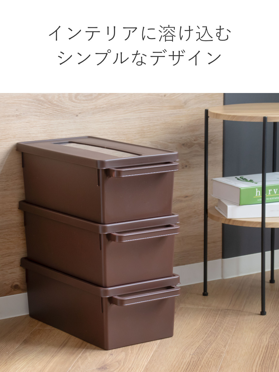 ベッド下や棚に収まるコンパクトな設計で、限られたスペースにもスマートに収納が可能です。積み重ねることもできるので、クローゼットやリビングのすき間にも収まります。持ち手を使って、ラクに出し入れや持ち運びができるのも嬉しいポイントです。
