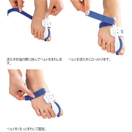 3点指圧方式で親指を自然な形に保ってくれる外反母趾ベルトです。親指にはめてベルトを巻くだけの簡単装着。3点圧でしっかり支えてくれます。睡眠時や着席時にお使いください。