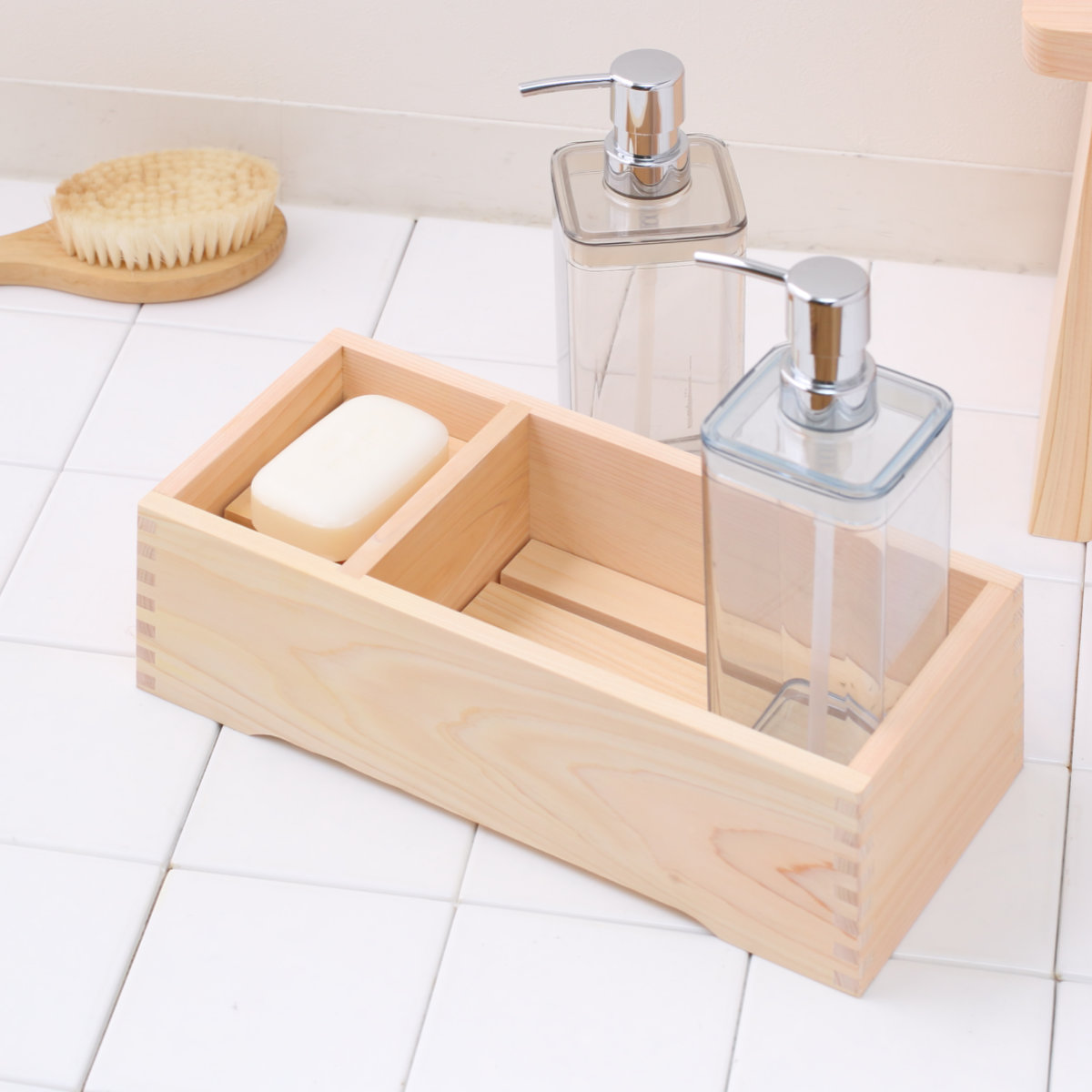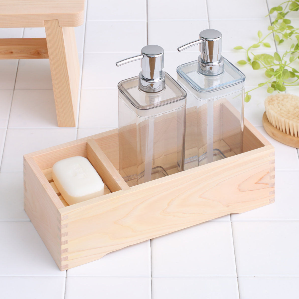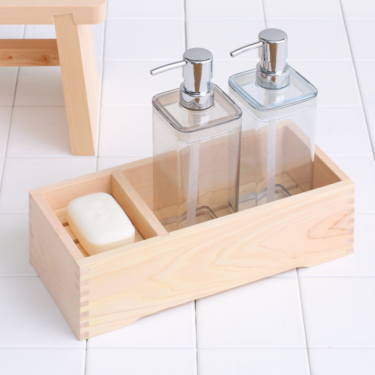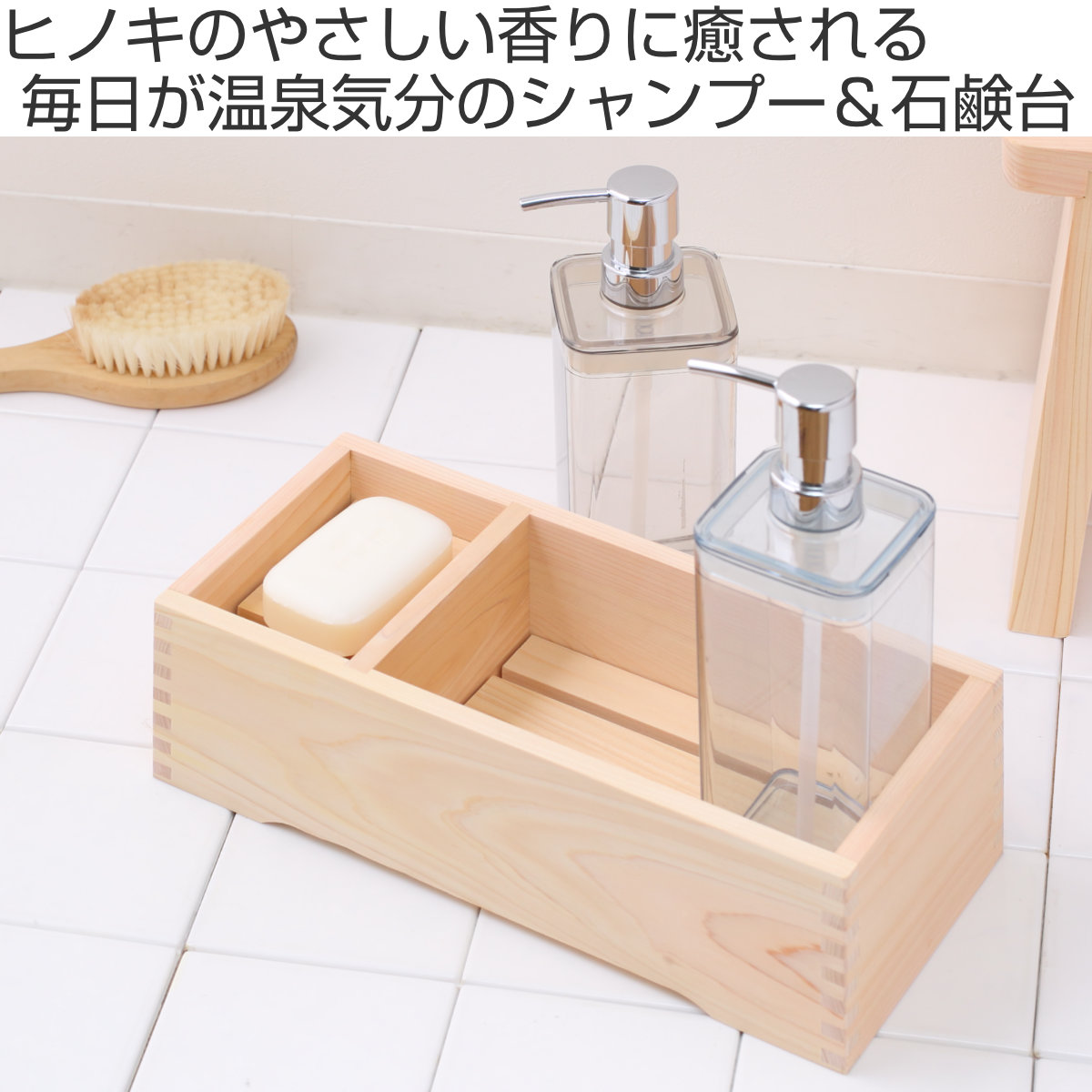 毎日安心して使える天然檜のシャンプー&石鹸台