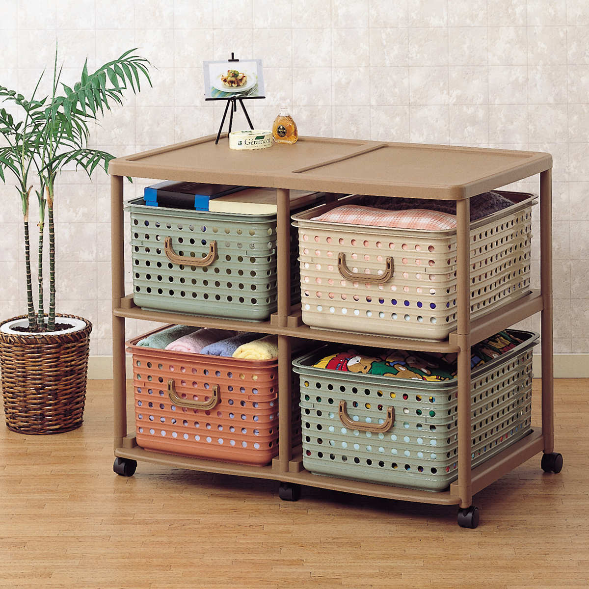 お子様のおもちゃ収納以外にも、バスケットラックは幅広くお使いいただけます。
