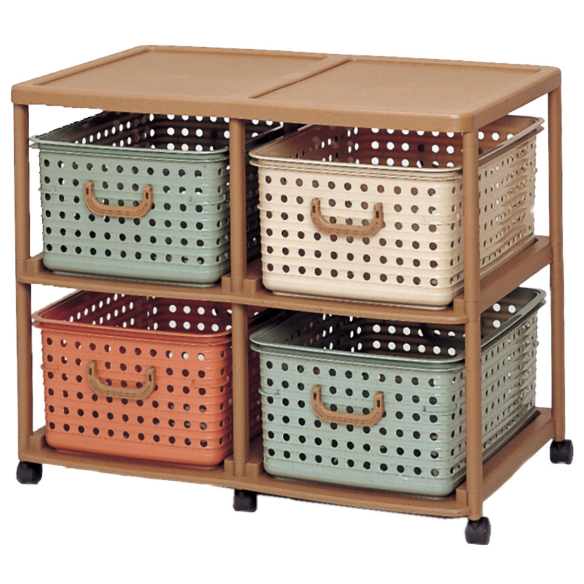 おもちゃ箱 幅87cm バスケットラック 2段 キャスター付き バスケット 4個付き ( かご カゴ オモチャ入れ 収納ボックス 簡単組立 ラック 衣類 収納 大容量 プラスチック製 子供 子ども 引き出し ランドセルラック ) 【ニュアンス】