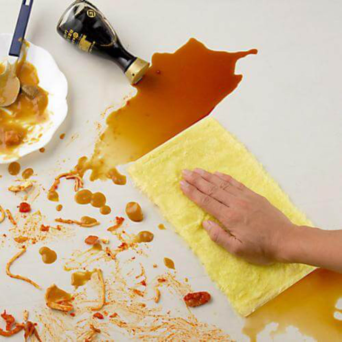 毛足の長いレーヨン繊維がその形状を利用して汚れをキャッチし、水だけで軽い油汚れが落とせます。台拭きとして、しょう油・ソースなどの食卓の汚れやレンジ・オーブンの油汚れなどにも使えます。