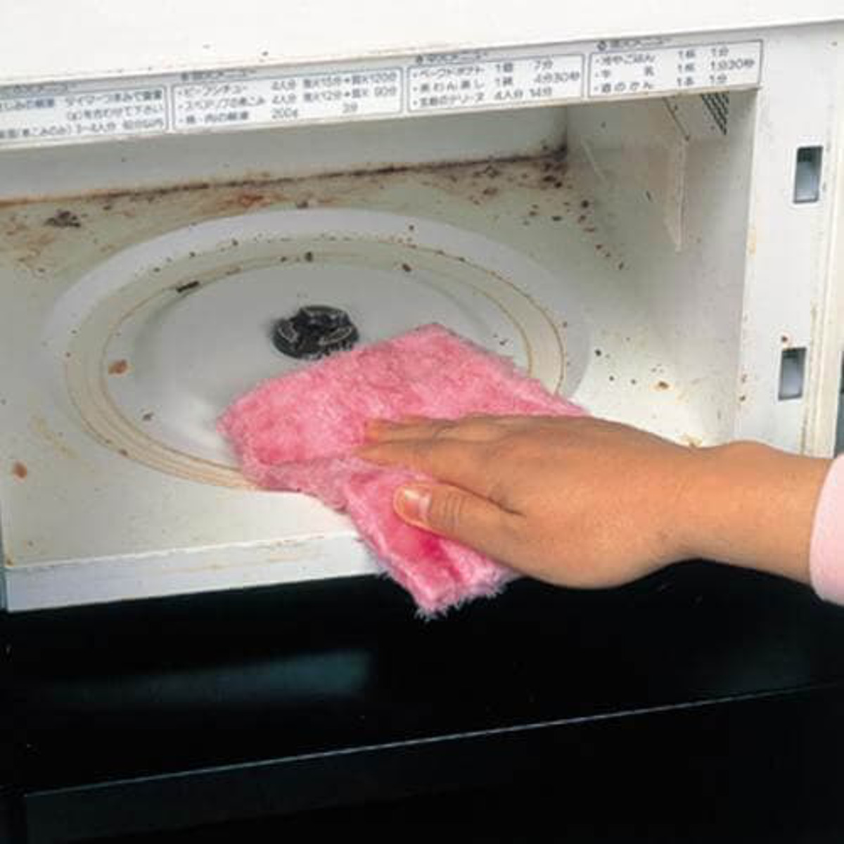 水だけで軽い油汚れも落とせるので、電子レンジ・冷蔵庫など洗剤を使いたくない場所にもおすすめです。