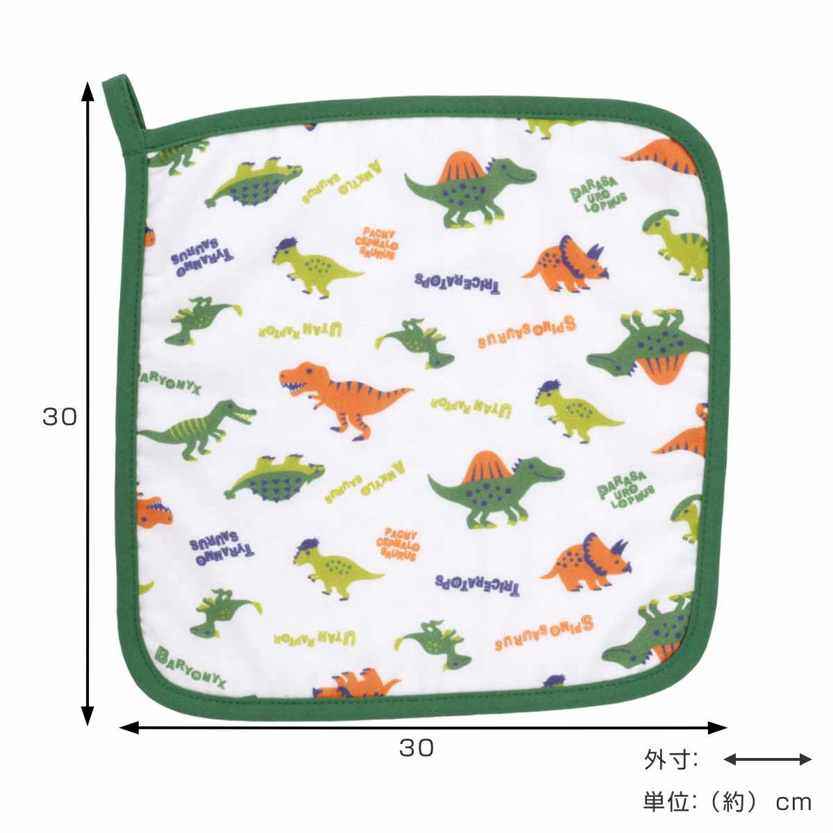 ベビー ハンドタオル 30×30cm 綿100% ガーゼ ループ付き ディノサウルス ( タオル ループ付きタオル ループタオル ガーゼハンカチ 手拭き 吸水 速乾 タオルハンカチ ハンカチ 紐付き 手ふき キッズ 保育園 幼稚園 )