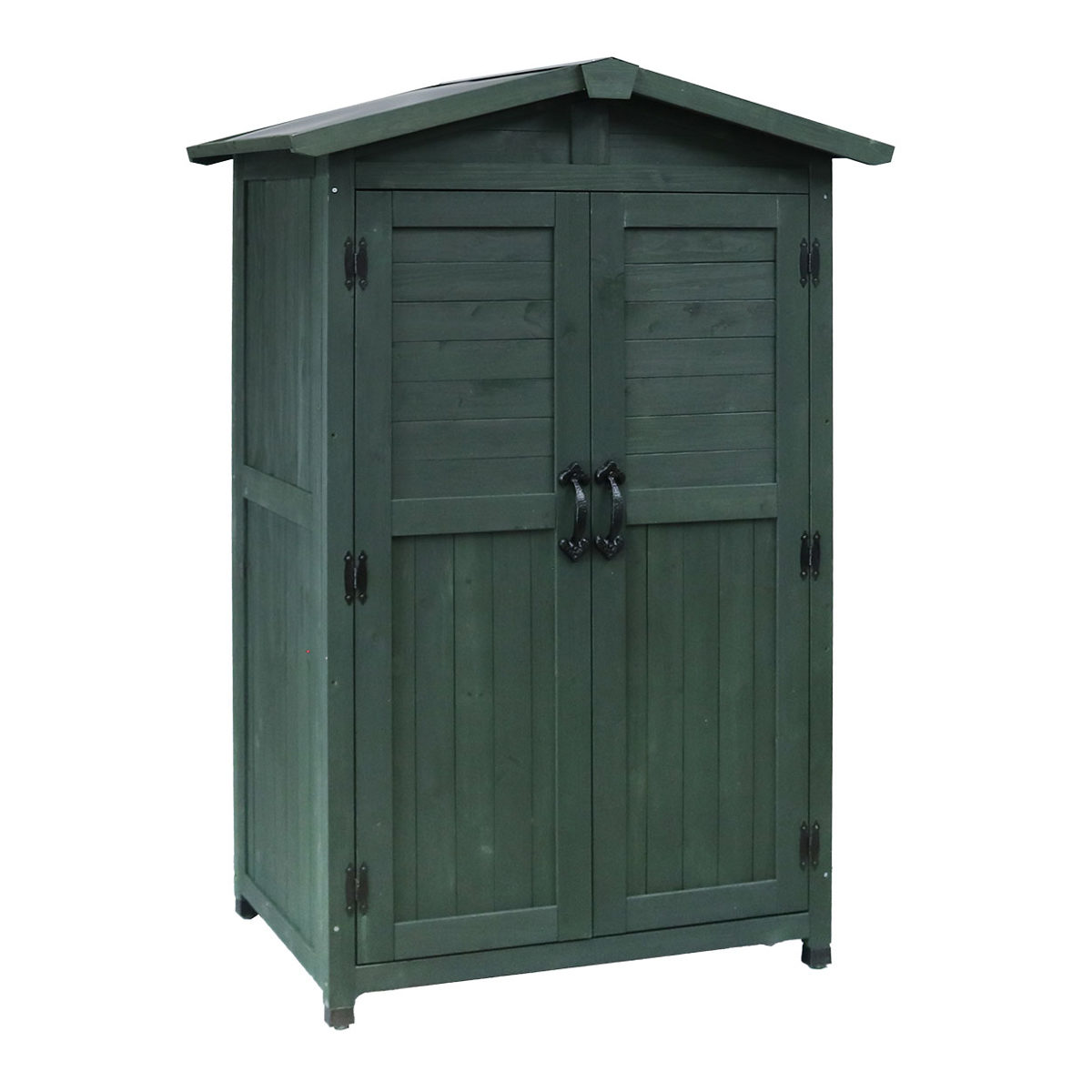 物置 三角屋根収納庫 木製 ( 屋外 屋外物置 約 幅 106 cm 木製物置 ベランダ 物置き 屋外収納 収納 ラック おしゃれ 収納棚 天然木 ガーデン ガレージ 庭用品 マグネット扉 ストッカー ガーデンストッカー ) 【ダークグリーン】