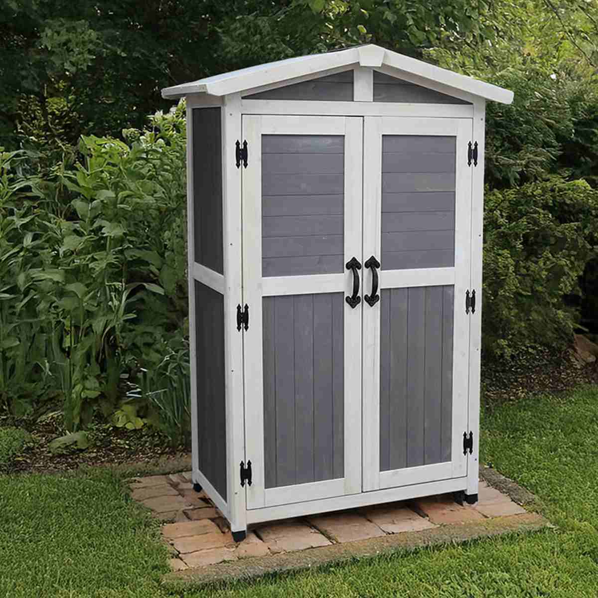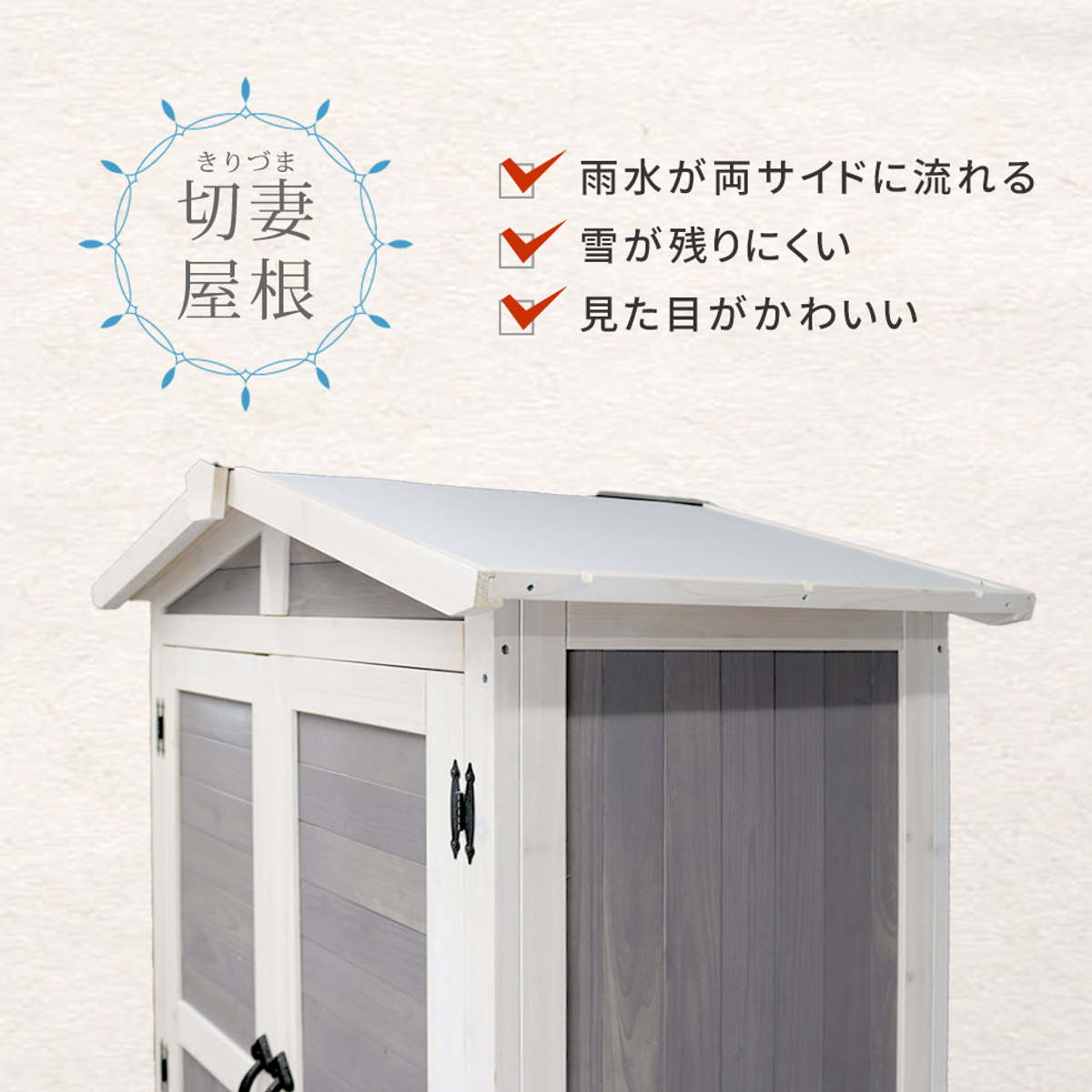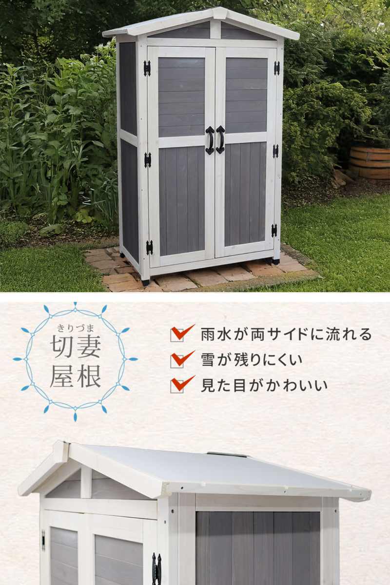 物置 三角屋根収納庫 木製 ( 屋外 屋外物置 約 幅 106 cm 木製物置 ベランダ 物置き 屋外収納 収納 ラック おしゃれ 収納棚 天然木 ガーデン ガレージ 庭用品 マグネット扉 ストッカー ガーデンストッカー ) 【グレー】