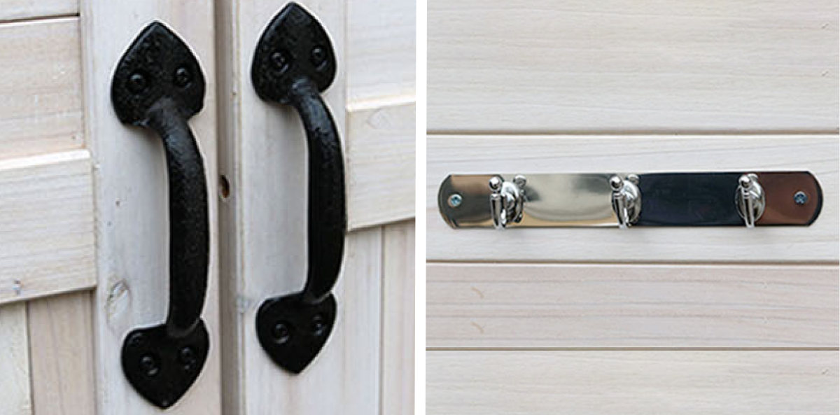 | アンティーク調デザイン 取っ手部分はアンティーク調のデザイン。さりげない装飾が全体の雰囲気を引き立て、上品な印象です。 | 便利な3連フック付き 好きな場所に付けられる3連フック付きです。ちょっとした道具や小物を引っ掛けられるので便利です。 ※デザインが変更になる場合があります。 |