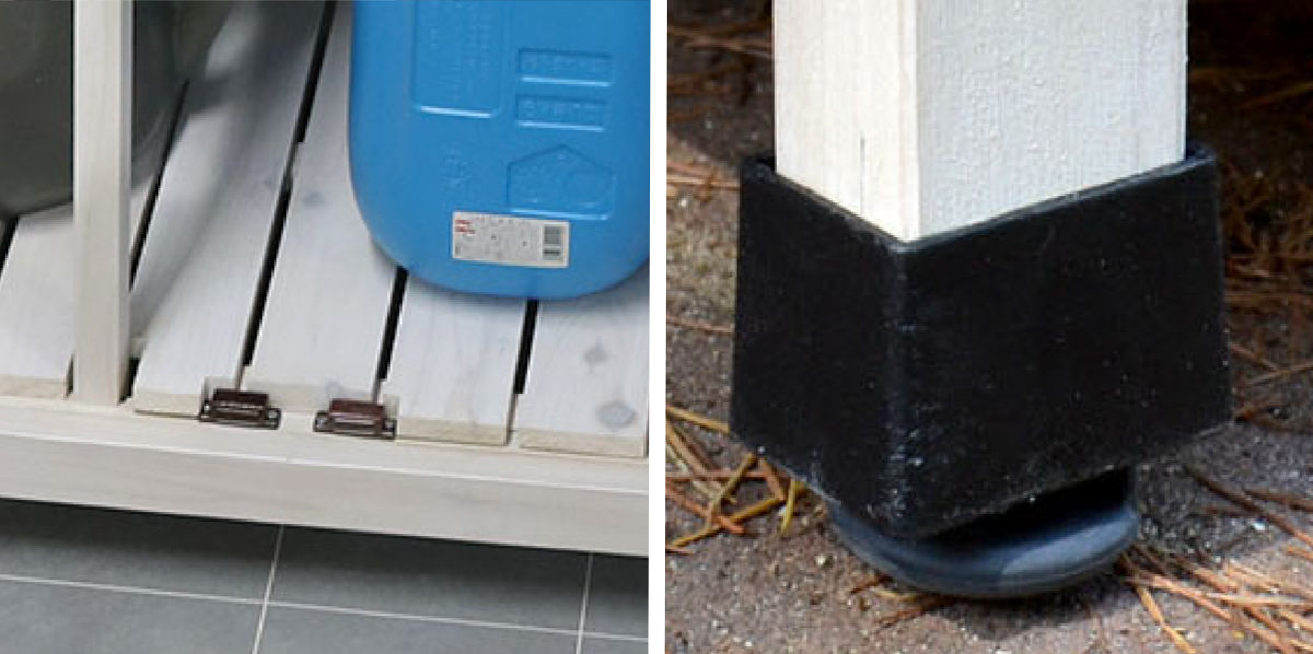 | 安心のマグネット扉 扉は上下マグネット付き。しっかり閉まり風で開きにくいです。 | アジャスター付き アジャスター付きでデコボコした床でも安心です。 |
