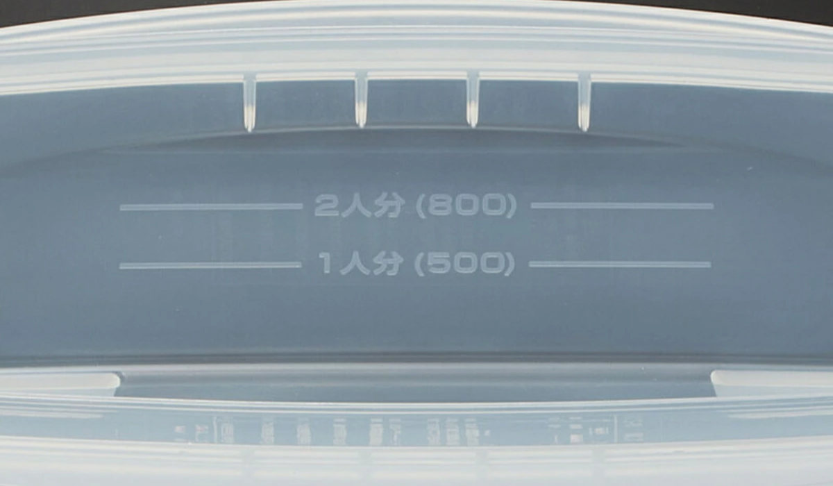 丈夫で変形しにくい肉厚設計の本体側面には水量用のメモリがあり、計量もラクラクです。