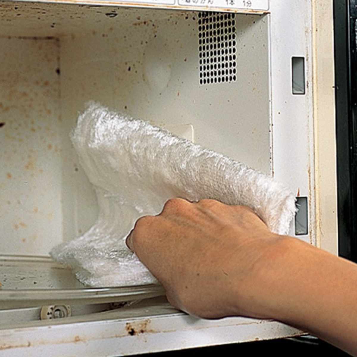 水だけで軽い油汚れも落とせるので、電子レンジ・冷蔵庫など洗剤を使いたくない場所にもおすすめです。