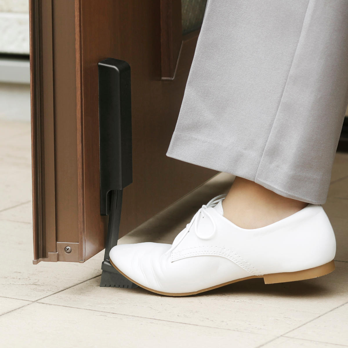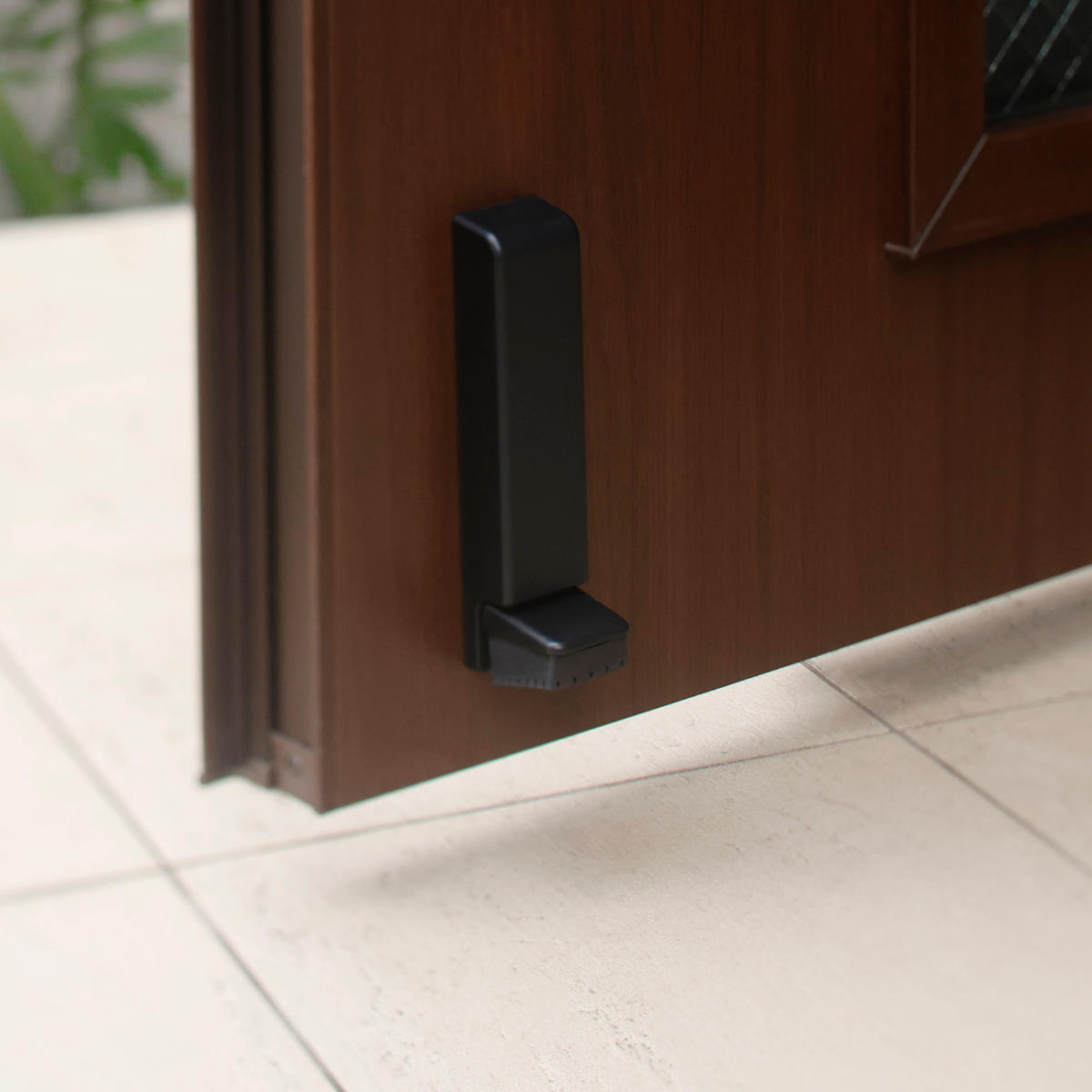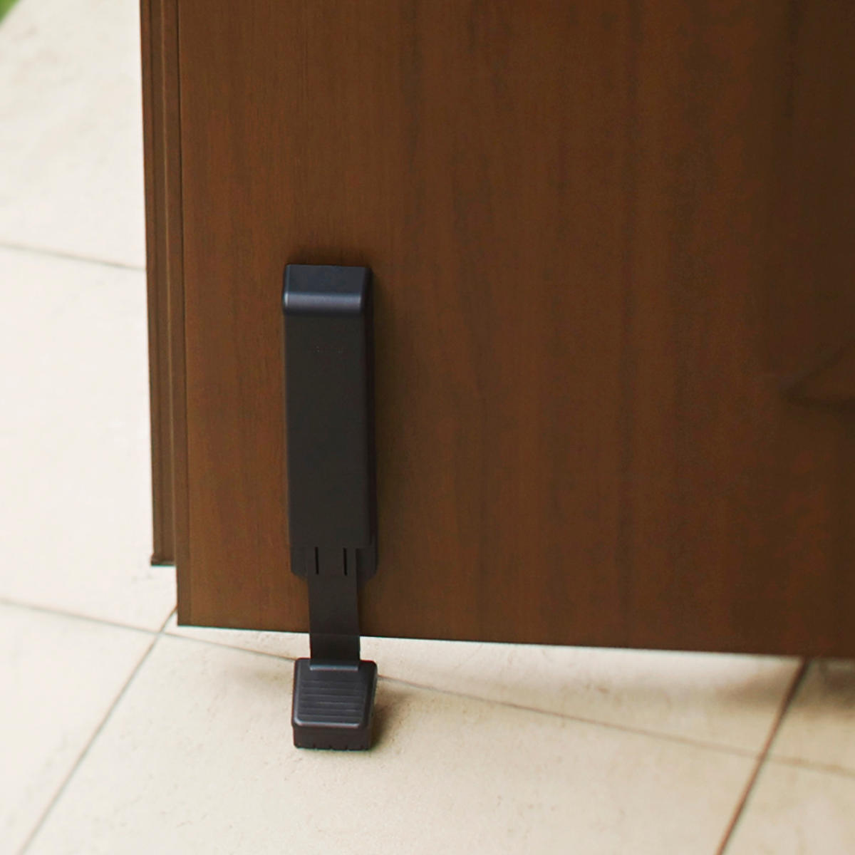 片足で固定・ドアを押してロック解除