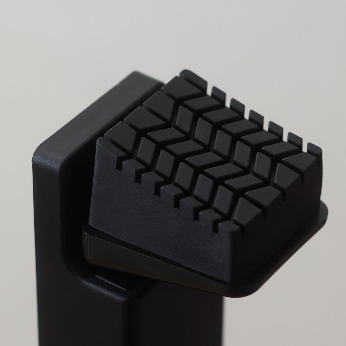 タイヤから着想を得た溝のパターンと弾力性のあるゴムで地面に密着。しっかりグリップして止まります。