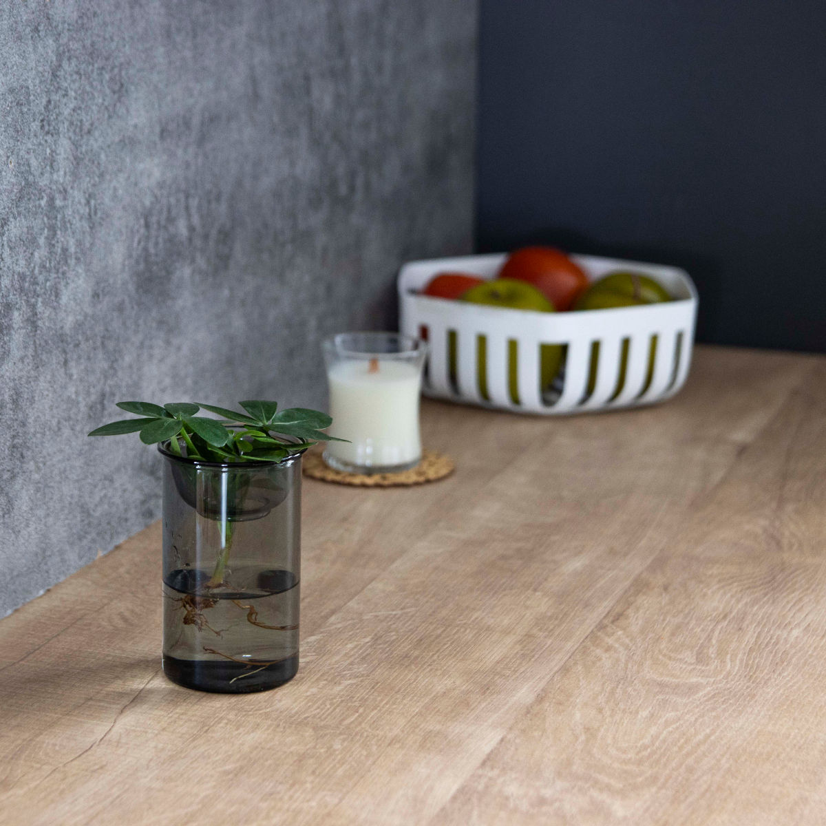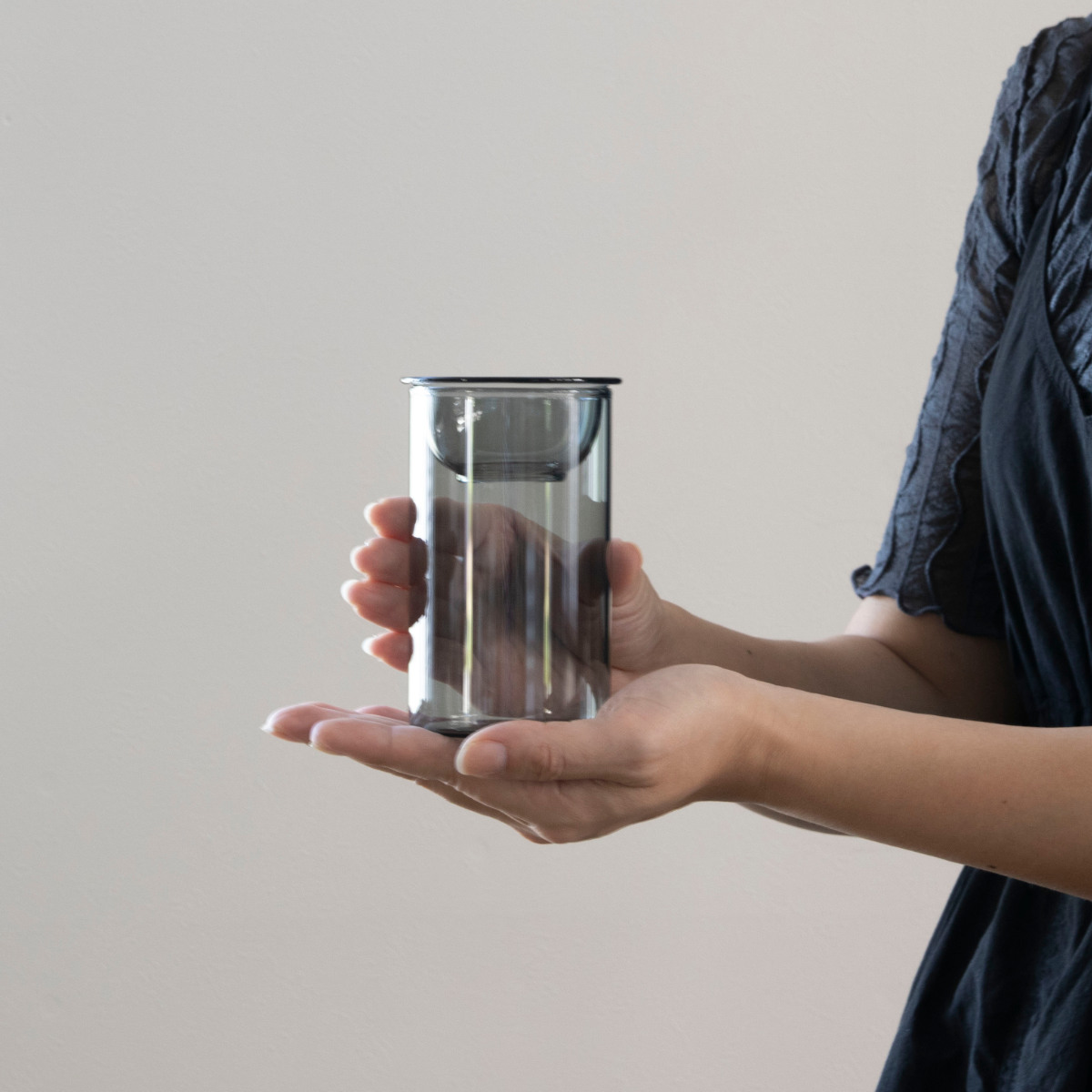 透明感のあるガラスとシンプルなフォルムはどんな空間にも溶け込みます。シリーズでサイズ違いや色違いをいくつか並べると統一感のある空間になります。