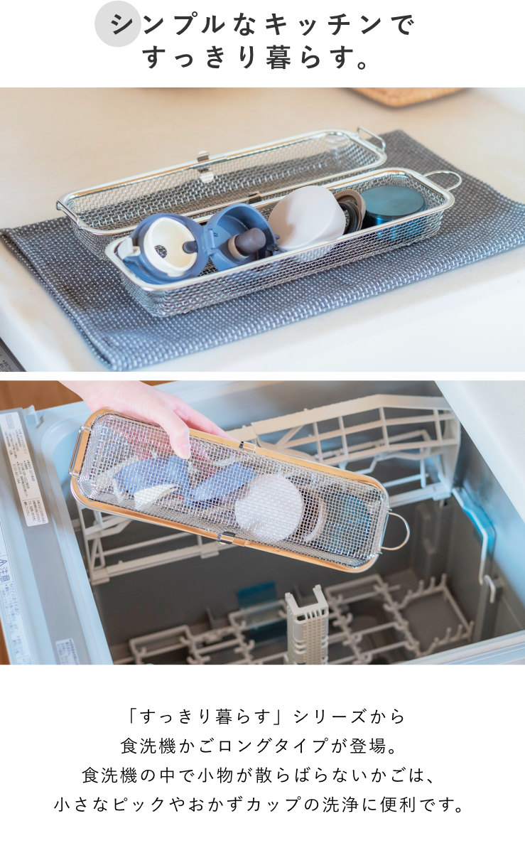 ビーワーススタイル すっきり暮らす 食洗機カゴ ロングタイプ ( 食洗機 かご 水切り 食洗機用小物カゴ 小物入れ 日本製 オールステンレス メッシュかご 小物洗い お弁当用品 カトラリー 水筒パッキン ピック )