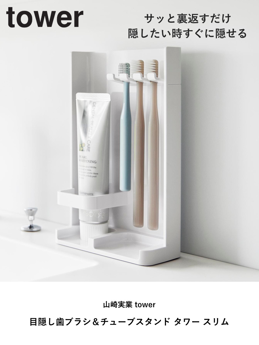 山崎実業 tower 目隠し歯ブラシ&チューブスタンド タワー スリム ( 4903208100250 タワーシリーズ 歯ブラシスタンド チューブスタンド 歯ブラシ立て 歯ブラシホルダー 歯ブラシ収納 目隠し 歯ブラシ&チューブ スタンド 収納 ) 【ブラック】