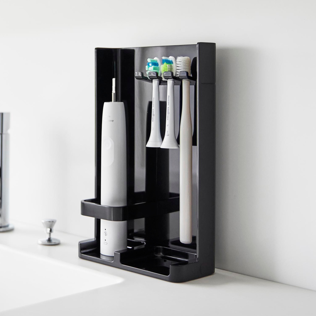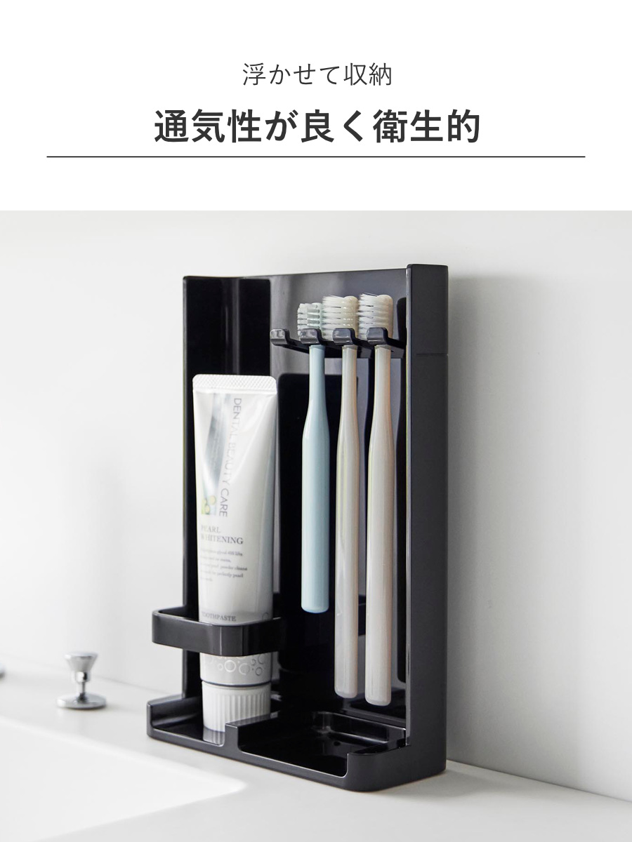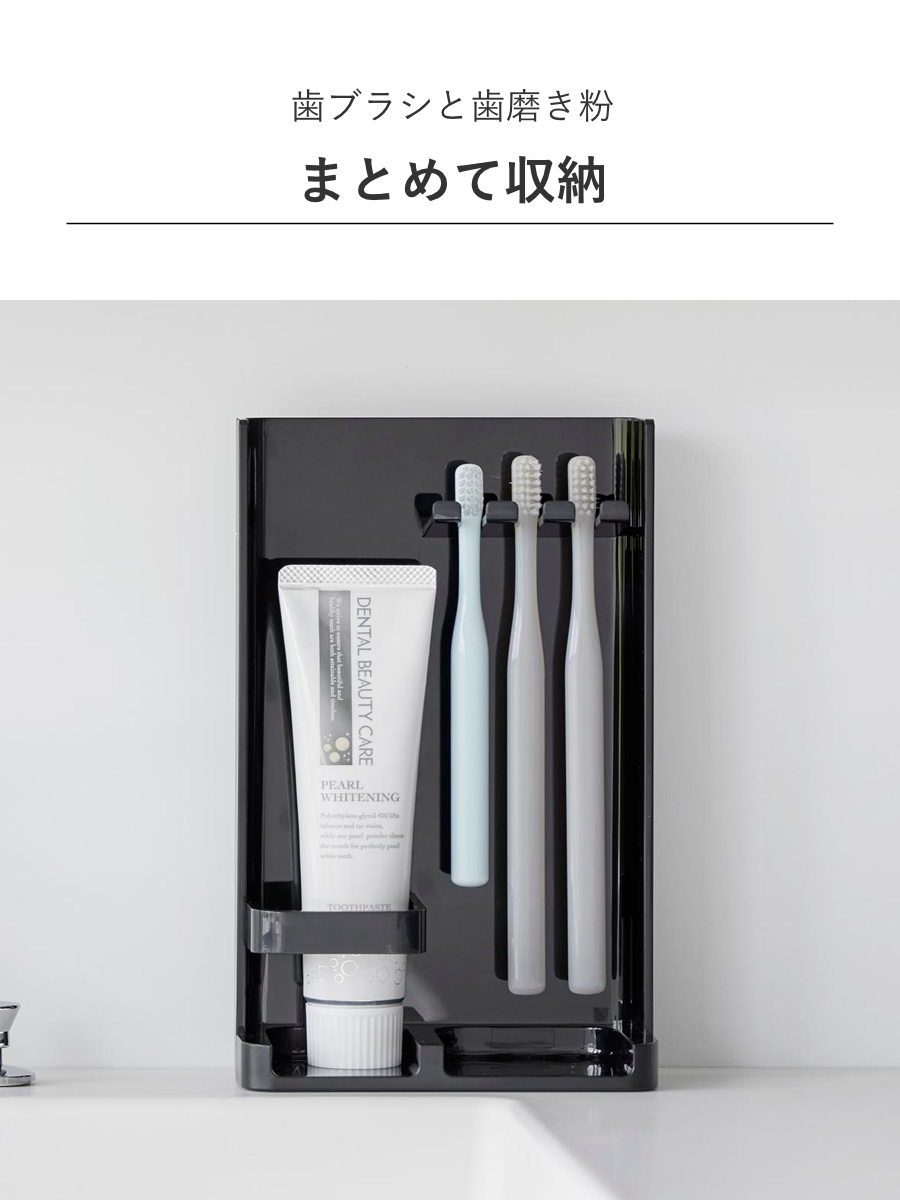 歯ブラシ3本、歯磨き粉チューブ1本が収納できます。電動歯ブラシや替えブラシの収納にもおすすめです。