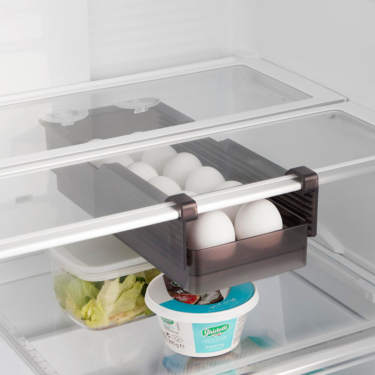収納する物や隙間に合わせて高さを7段階に調節できる棚下12個用卵ラック「S」です。棚の奥まで無駄なく使えるロングタイプで冷蔵庫の中をスッキリ整理整頓できます。