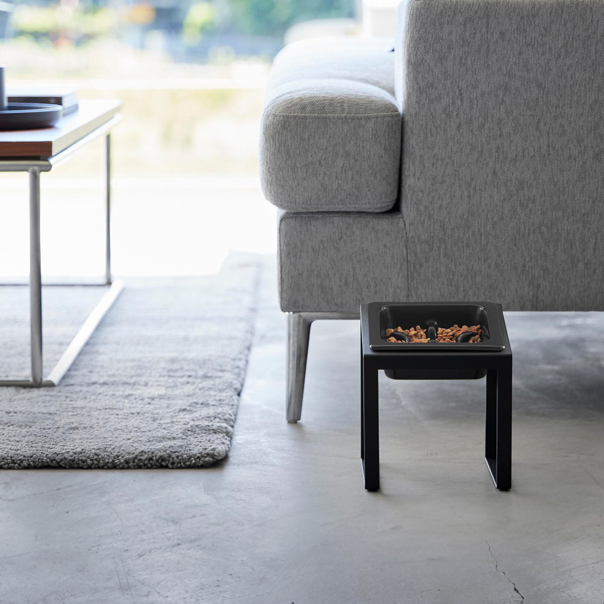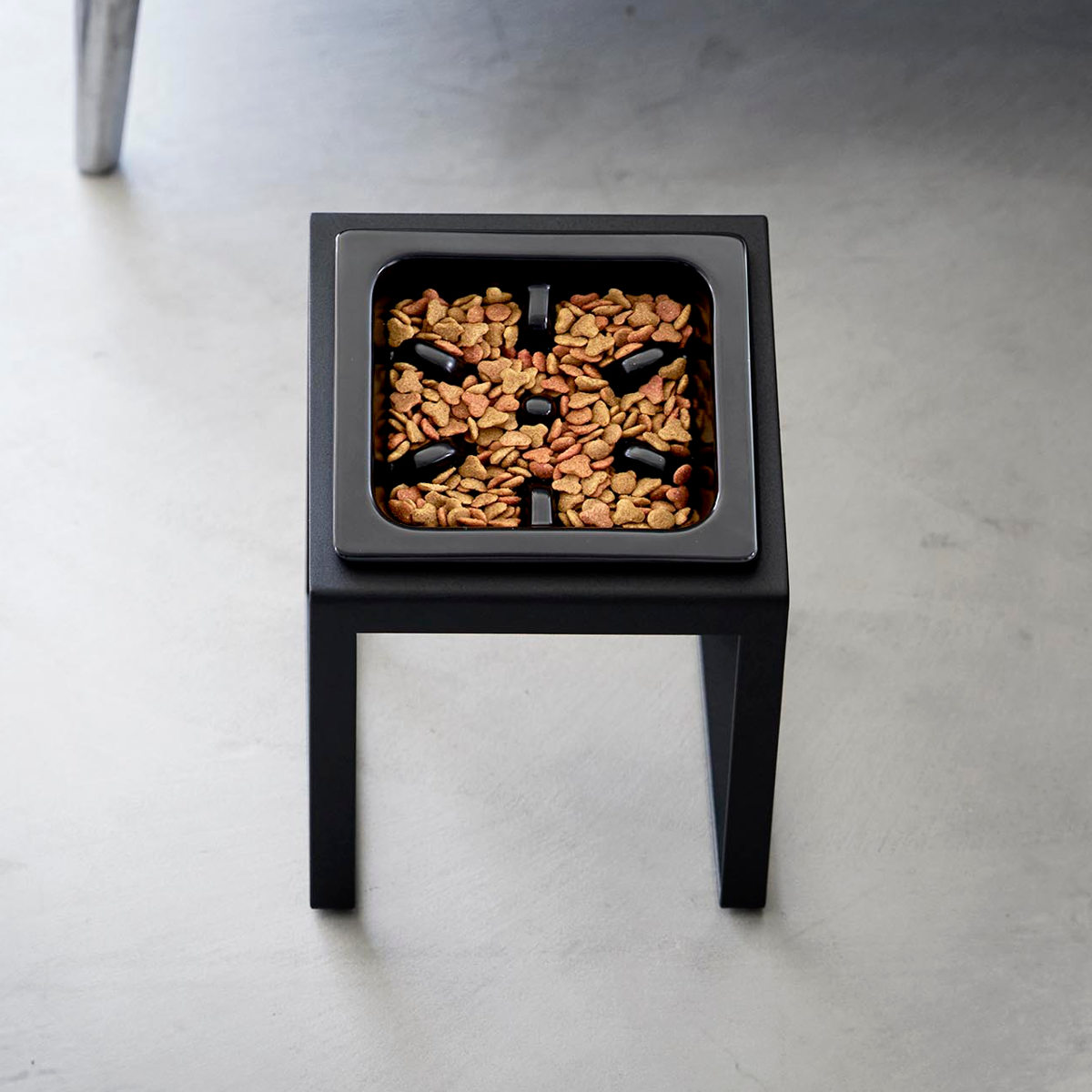 ボウルの位置が高く、手前に傾いた設計で食べやすいペットフードボウルスタンドです。ペットの腰や首に負担をかけずに食べ残しなどを防止できます。