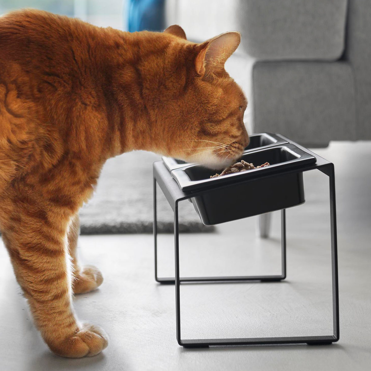 ボウルの位置が高く、手前に傾いた設計で食べやすいペットフードボウルスタンドです。ペットの腰や首に負担をかけずに食べ残しなどを防止できます。