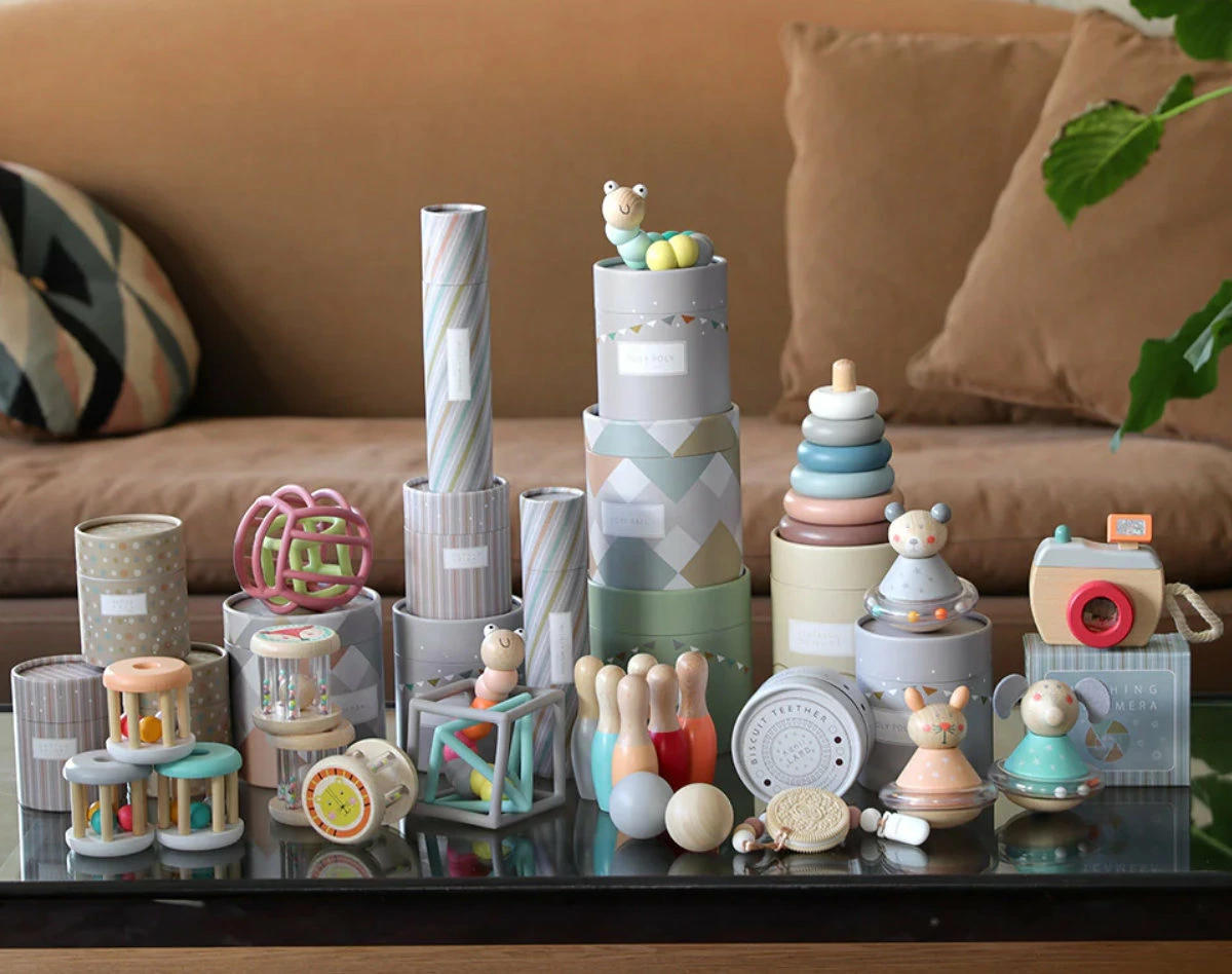 木製おもちゃAdnil LAND(アドニルランド)キッズシリーズはお部屋に散らばっていても可愛く見えちゃう、色合いの優しいおもちゃです。片付けの暇もない親御さんもニッコリ。振ったり掴んだりと遊びを通して赤ちゃんの脳に刺激を与えてくれる、形状を認知するのにも最適な知育玩具です。
