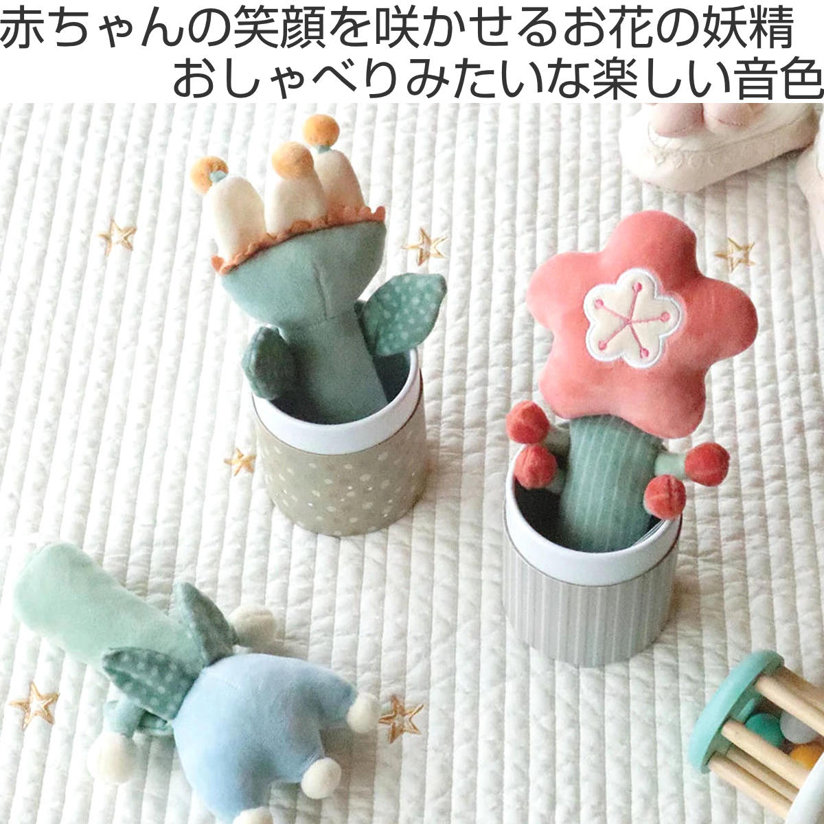 王冠のようなボンボンがついた花びらが素敵な妖精。「リンリン」と優しい音色で赤ちゃんの笑顔を咲かせます。