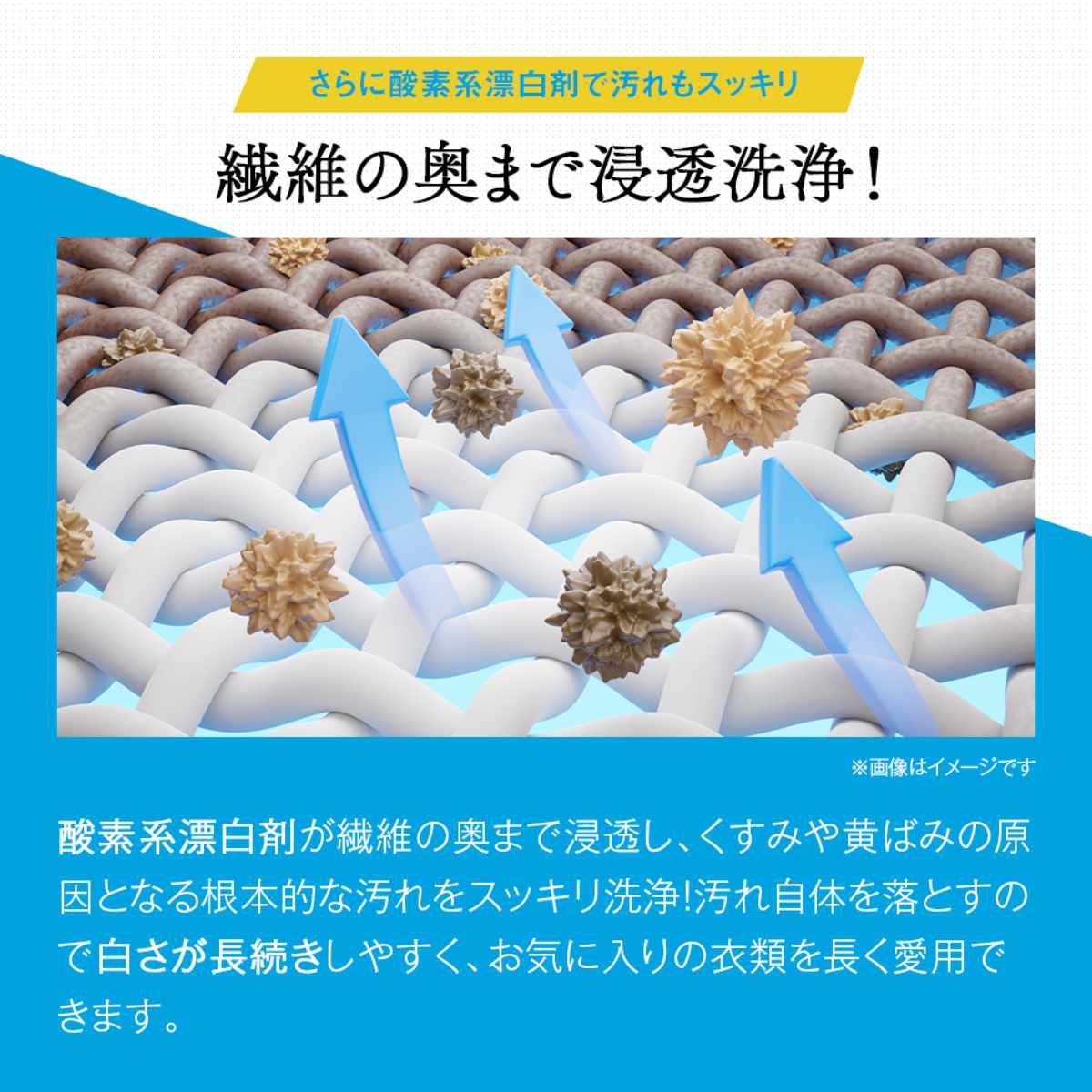 くすみや黄ばみの原因を元から落とし、白さを長くキープします。いつでも清潔で気持ちよく着られます。