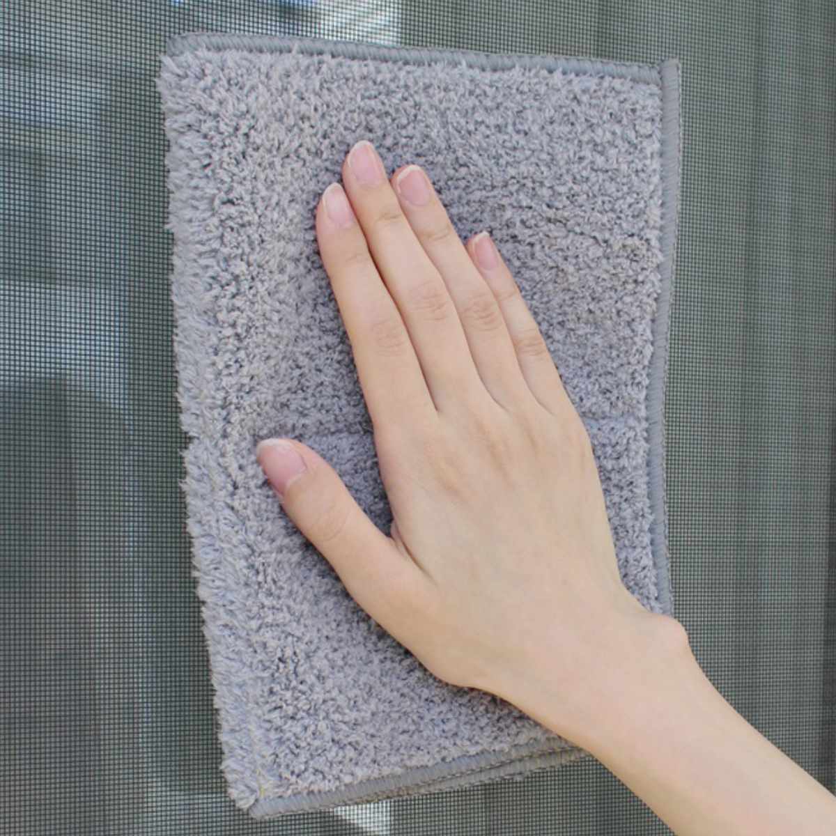 洗剤を使わずクロスだけで掃除ができます。ブラシ繊維が網戸の目に入り込み、細かい汚れも拭き取ります。