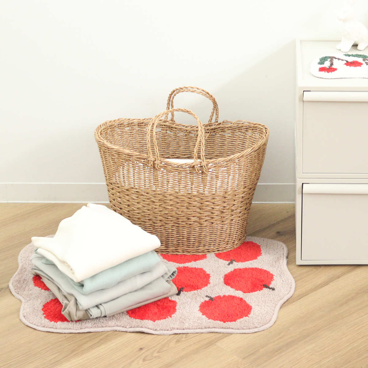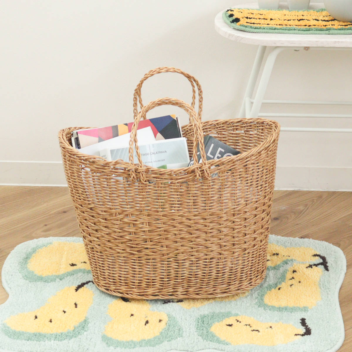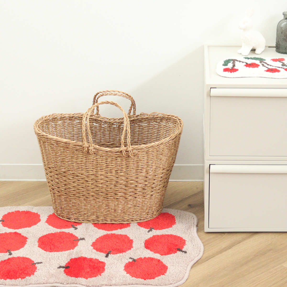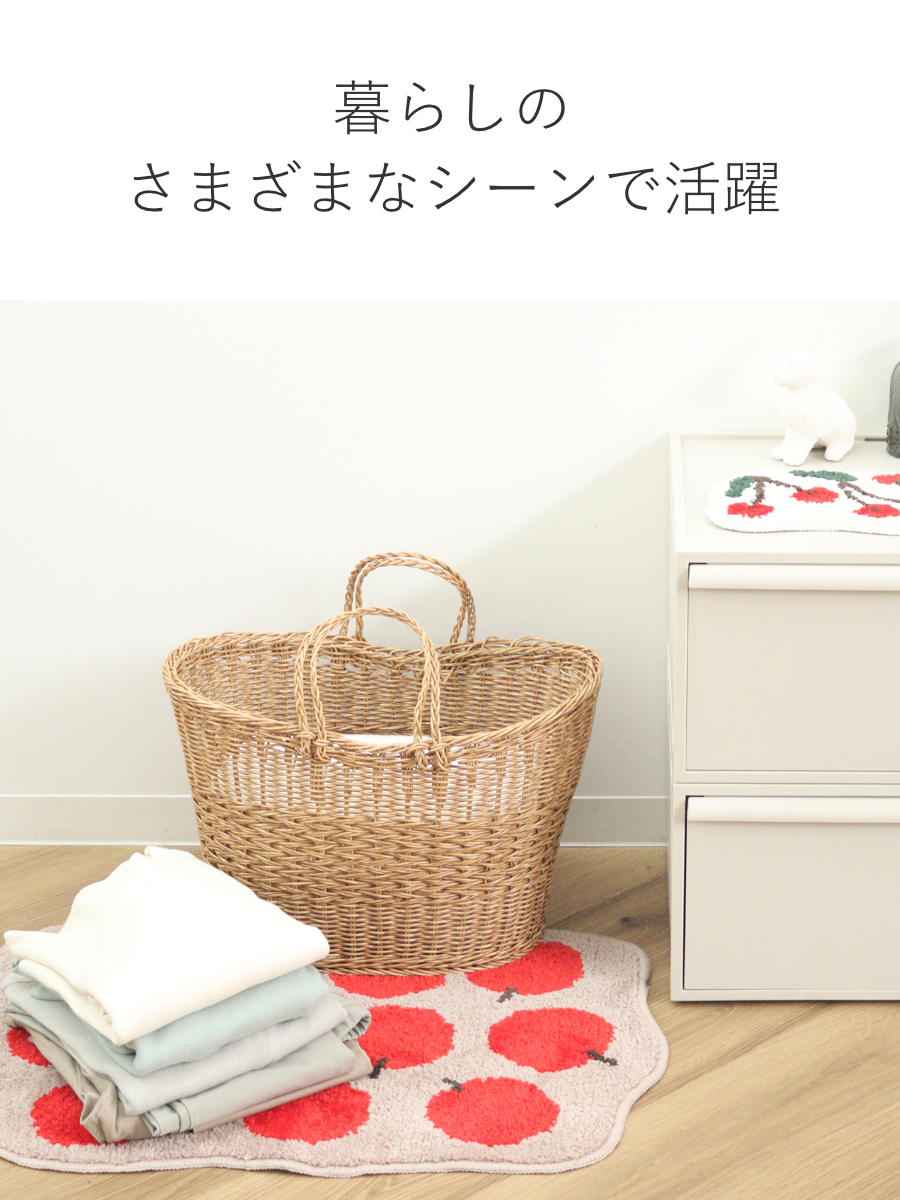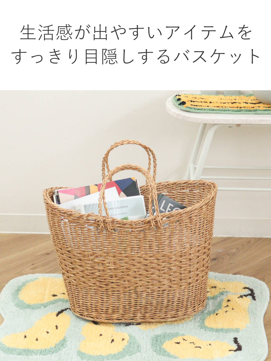 生活感が出やすいアイテムをすっきりと目隠しできるバスケットです。手編みのような素朴なかご編みは、お部屋にやさしく馴染みながらも、さりげない存在感を放ちます。