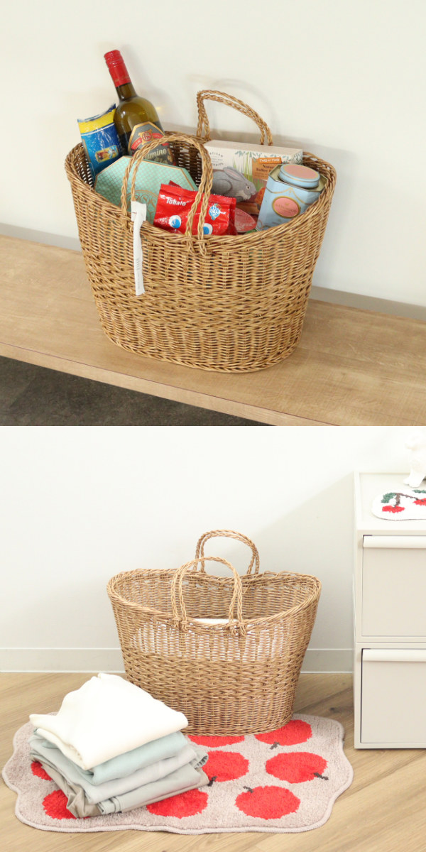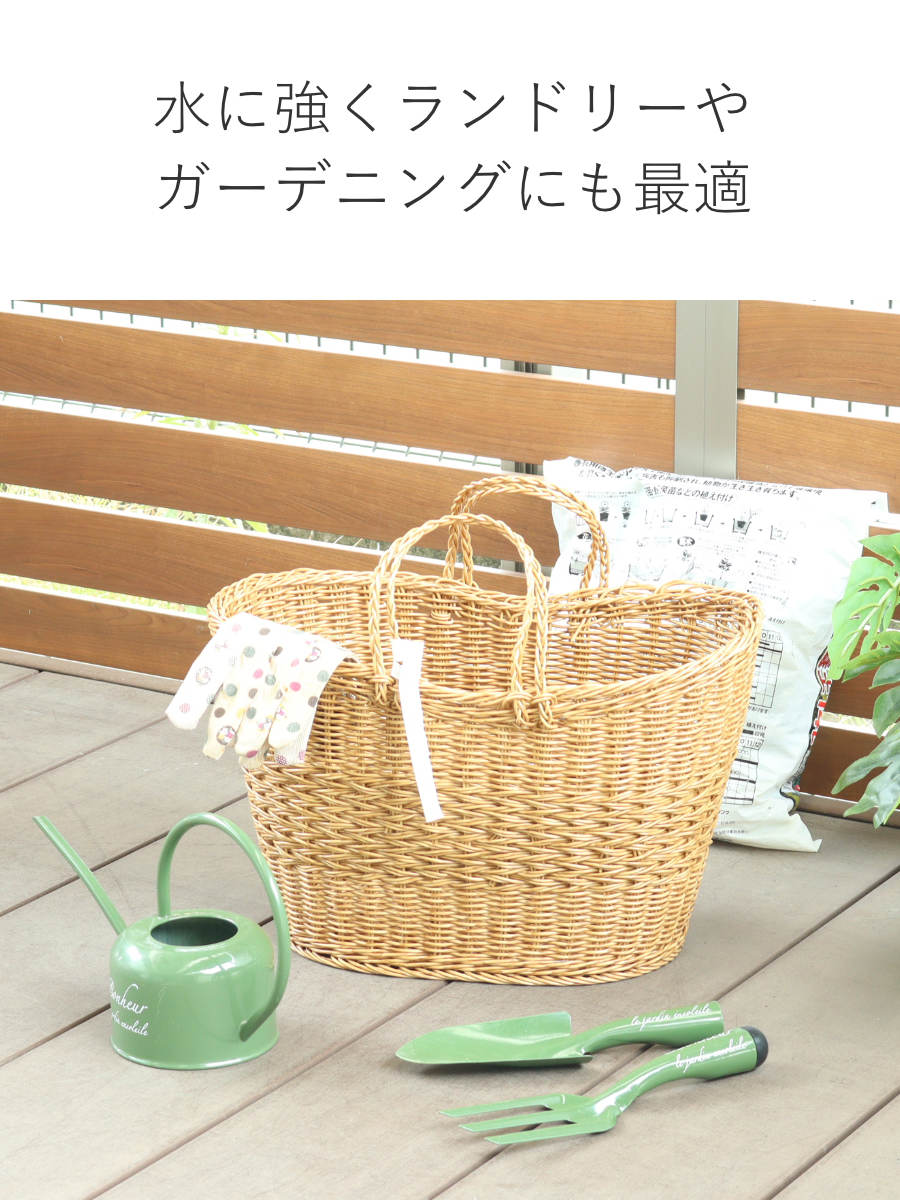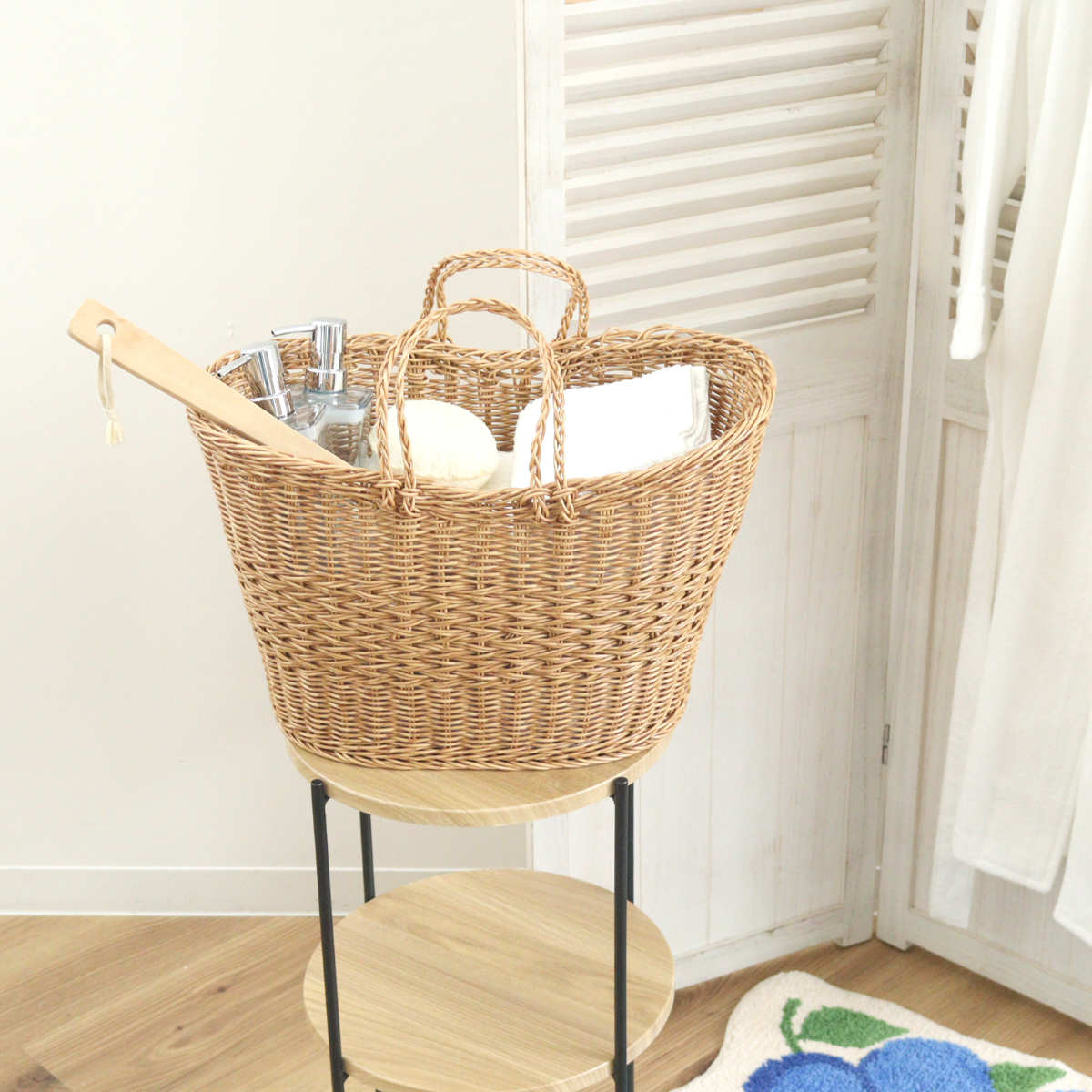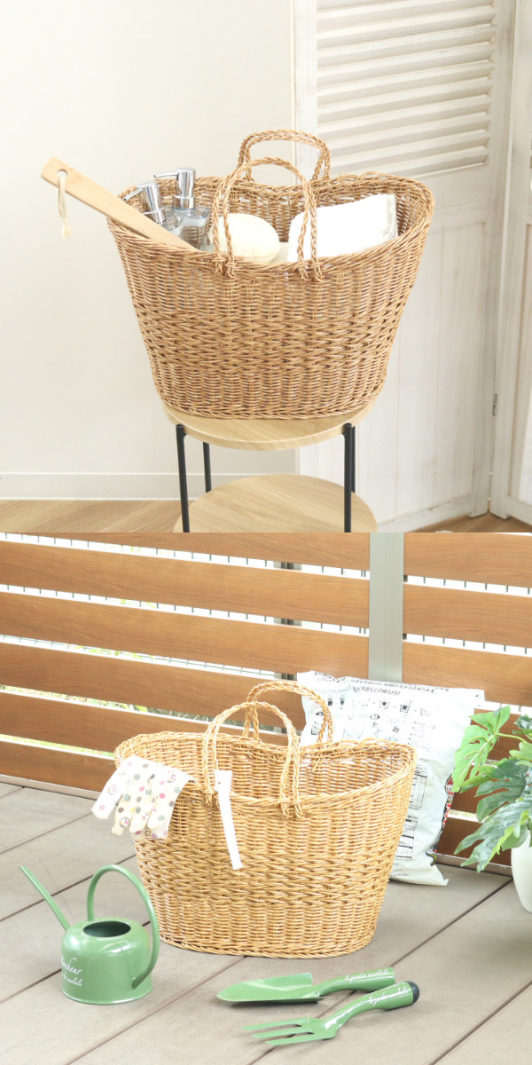 水や湿気に強く多湿な空間でも活躍します。洗濯物やタオルを入れる脱衣かごや、ガーデニング用品の収納、観葉植物カバーにもぴったりです。
