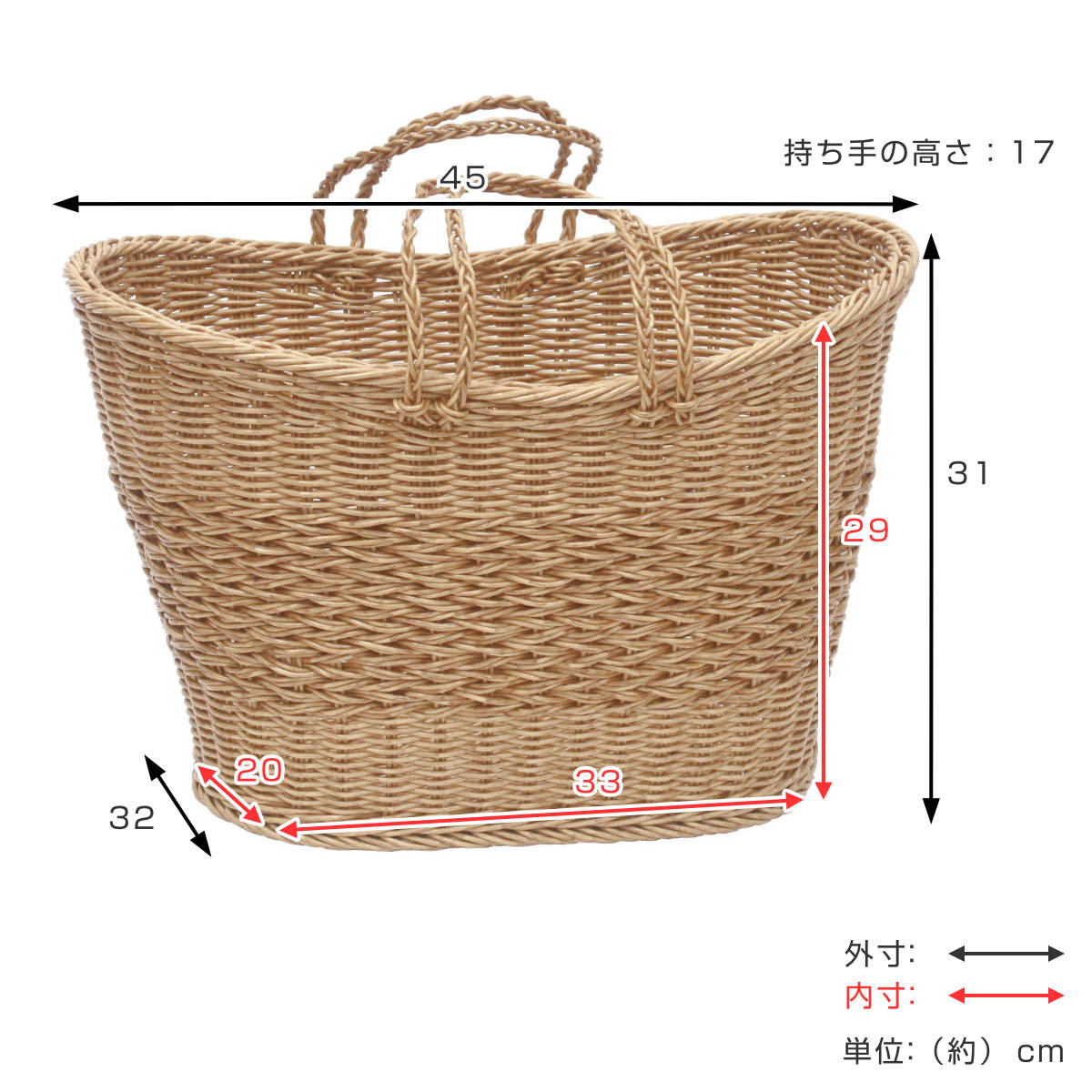| サイズ | 外寸:約 幅45×奥行32×高さ31(cm) 内寸:約 幅33×奥行20×高さ25(cm) 持ち手の高さ:約 17(cm) |