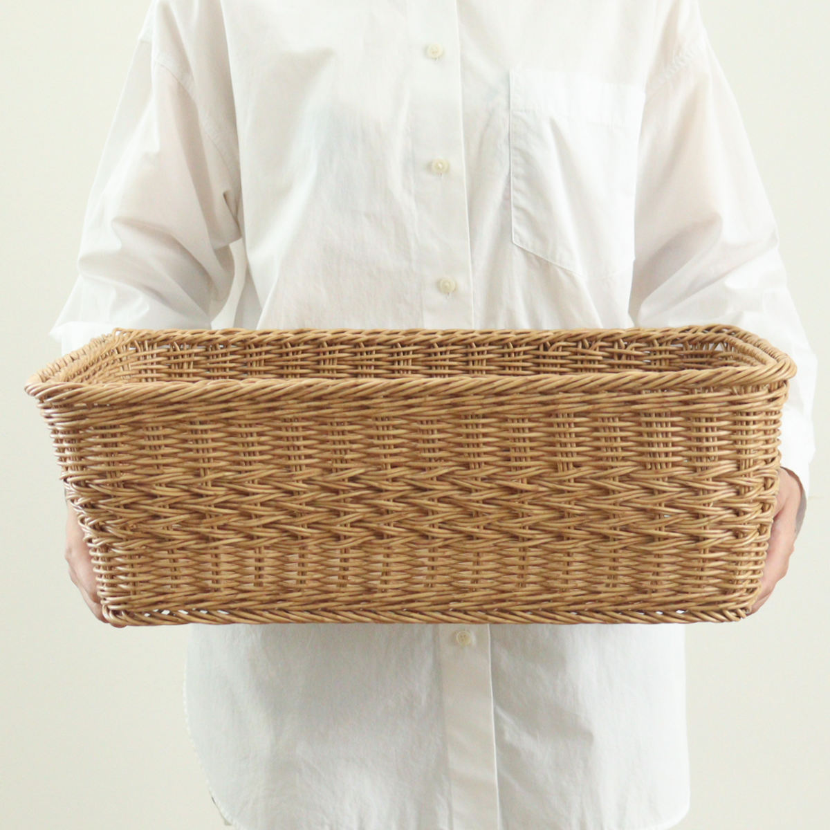 バスケット ユティルナイール かご レクト ( 幅48×奥行38×高さ16cm 洗える収納ボックス 水洗い カゴ 洗えるバスケット 収納 天然素材風 小物収納 収納かご 収納ケース お手入れ簡単 軽量 柔軟性 しなやか ささくれない )