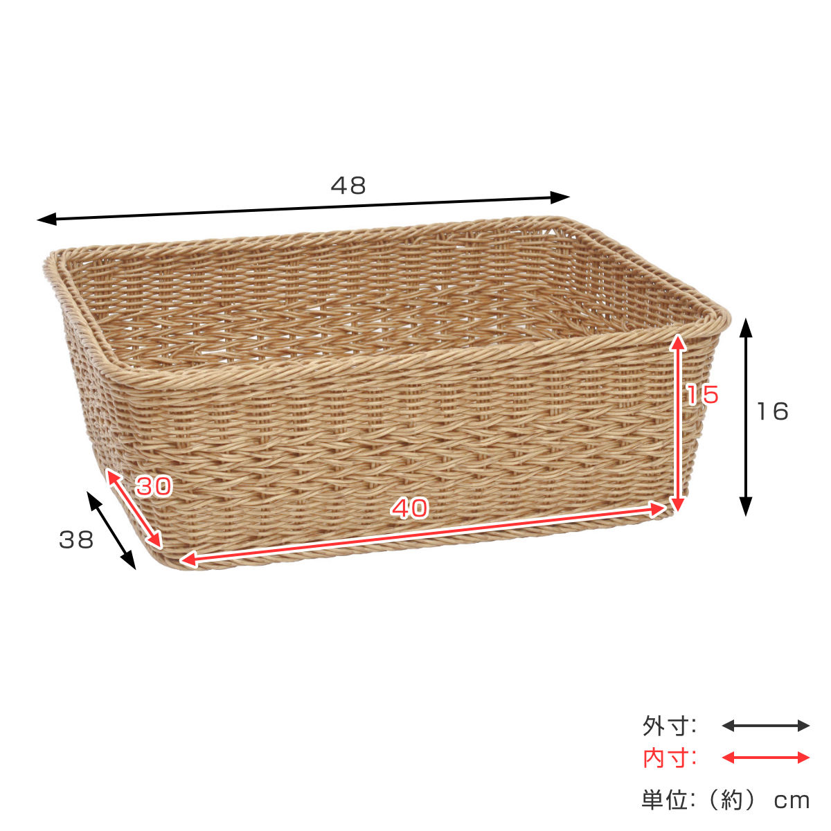 | サイズ | 外寸:約 幅48×奥行38×高さ16(cm) 内寸:約 幅40×奥行30×高さ15(cm) |