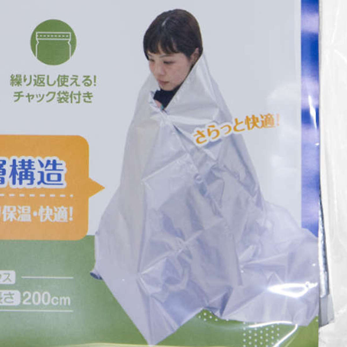 災害時やアウトドアで活躍するエマージェンシーブランケット。約130×200cmの大判サイズで、寒い時期でも全身をしっかり包み込めます。