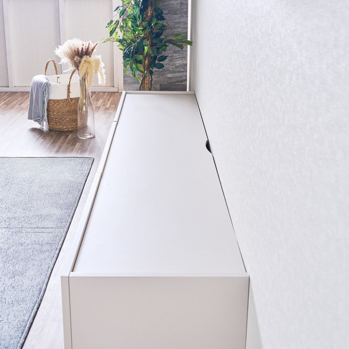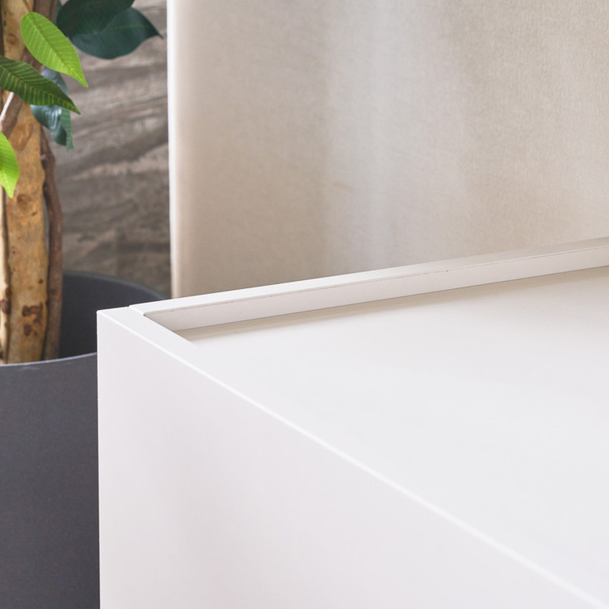 表面材には硬くて傷や熱に強いメラミン化粧板を使用しているので、キズがつきにくく、汚れてもサッと拭き取れます。紫外線や日光にも強く色あせしにくいので、長く美しい状態を保てます。また、天板の側面は少し高さを持たせているので、飾った小物などの落下を防ぎます。