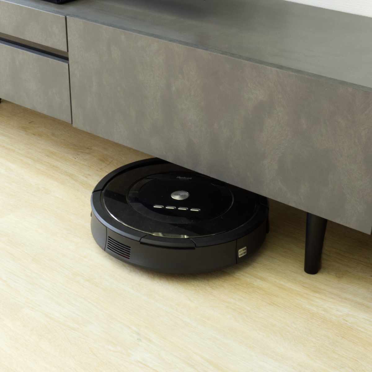 天然木を使用した脚部は、高さ約15cm。一般的なお掃除ロボットが通れる高さ設計なので、いつでも清潔を保つことができます。モップや掃除機も入れやすいので、お掃除がしやすいです。