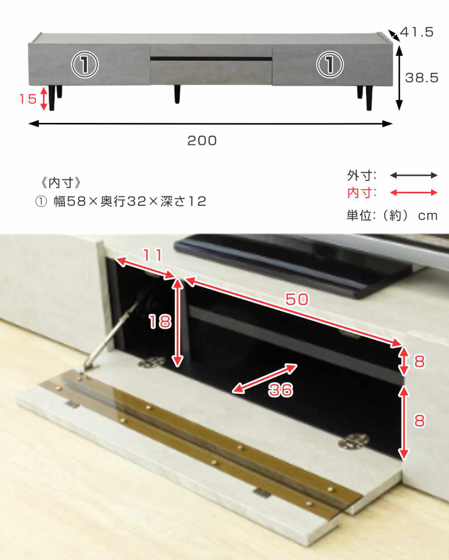 | サイズ | 約 幅200×奥行41.5×高さ38.5(cm) |