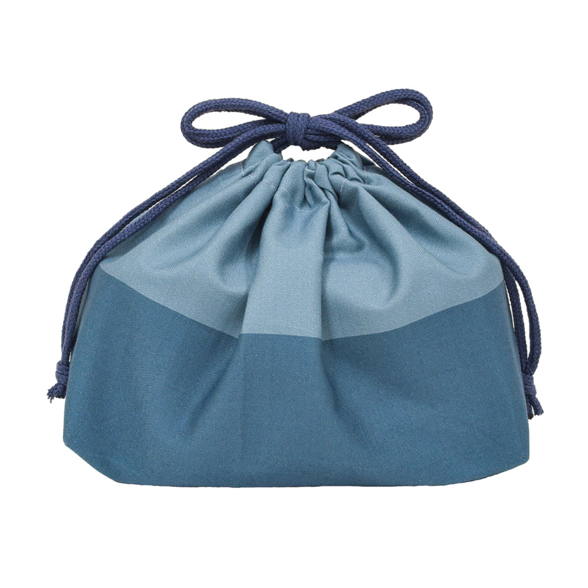 保冷ランチ巾着 モノクローム ( 保冷 保温 弁当袋 お弁当袋 ランチバッグ 巾着袋 お弁当入れ シンプル 給食袋 お弁当箱 弁当 袋 ランチ マチ付き 大人 子供 洗える 日本製 ) 【ネイビー】