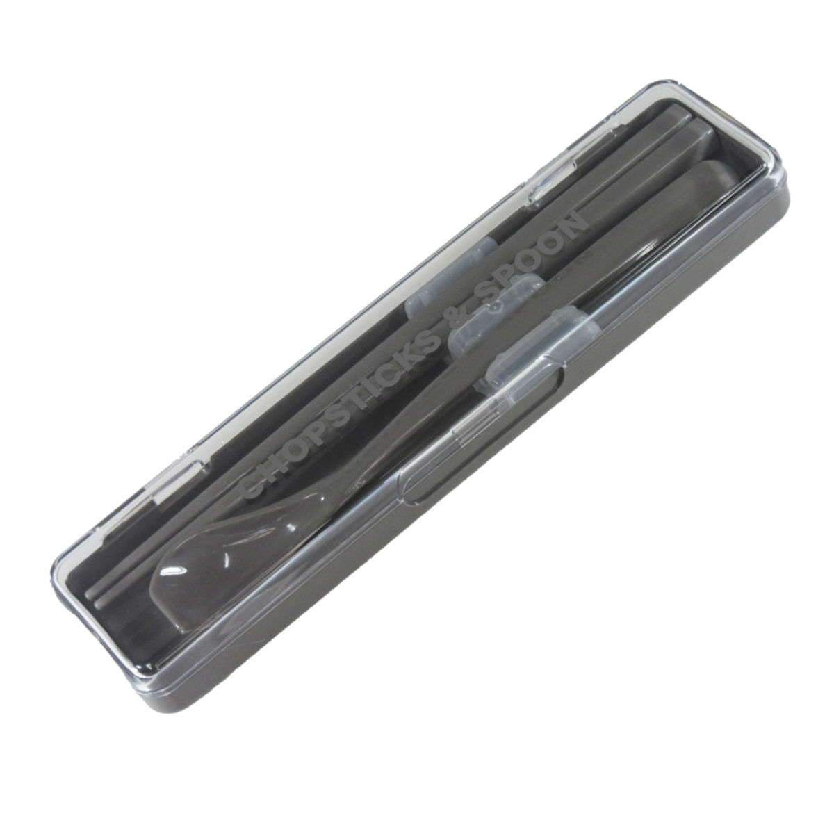 コンビセット モノクローム 箸 スプーン ( お箸 箸箱 セット 滑り止め加工 食洗機対応 大人用 日本製 音が鳴りにくい 食洗機OK お弁当用 携帯箸 カトラリー 持ち運び 携帯用 ) 【チャコールグレー】