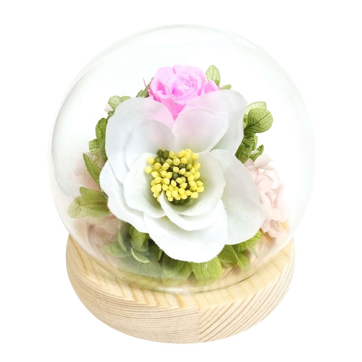 ●高級感のあるガラスドームに包まれ、ホコリや湿気から守られることで、花の美しさを長く保ちます。