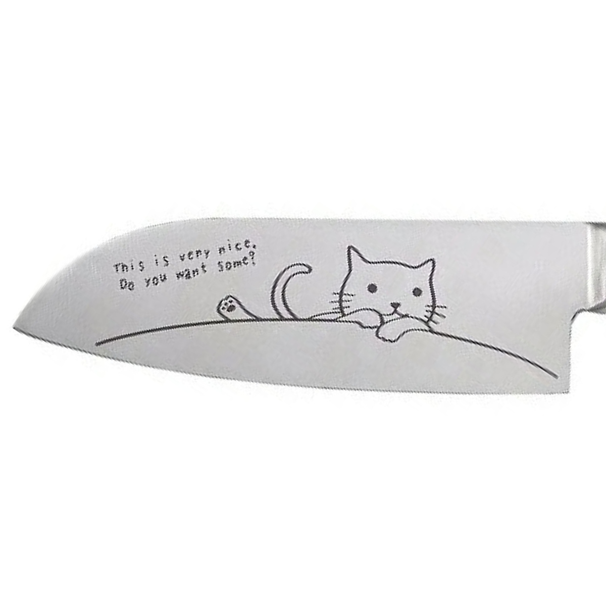 ネコのイラスト入り小三徳包丁 14cm