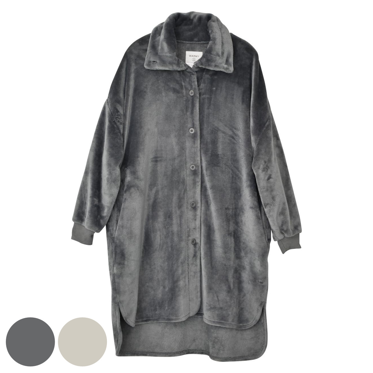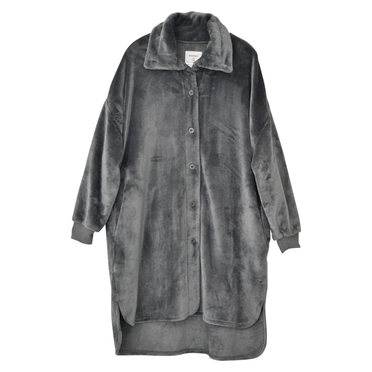 着る毛布 ルームウェア WARMY ロングブルゾン ( ロング レディース フリーサイズ 部屋着 パジャマ リブ袖 ポケット付き 冬 あったか ふわふわ 着丈90cm もこもこ 女性用 洗える 暖かい かわいい 無地 ブランケット ) 【チャコールグレー】