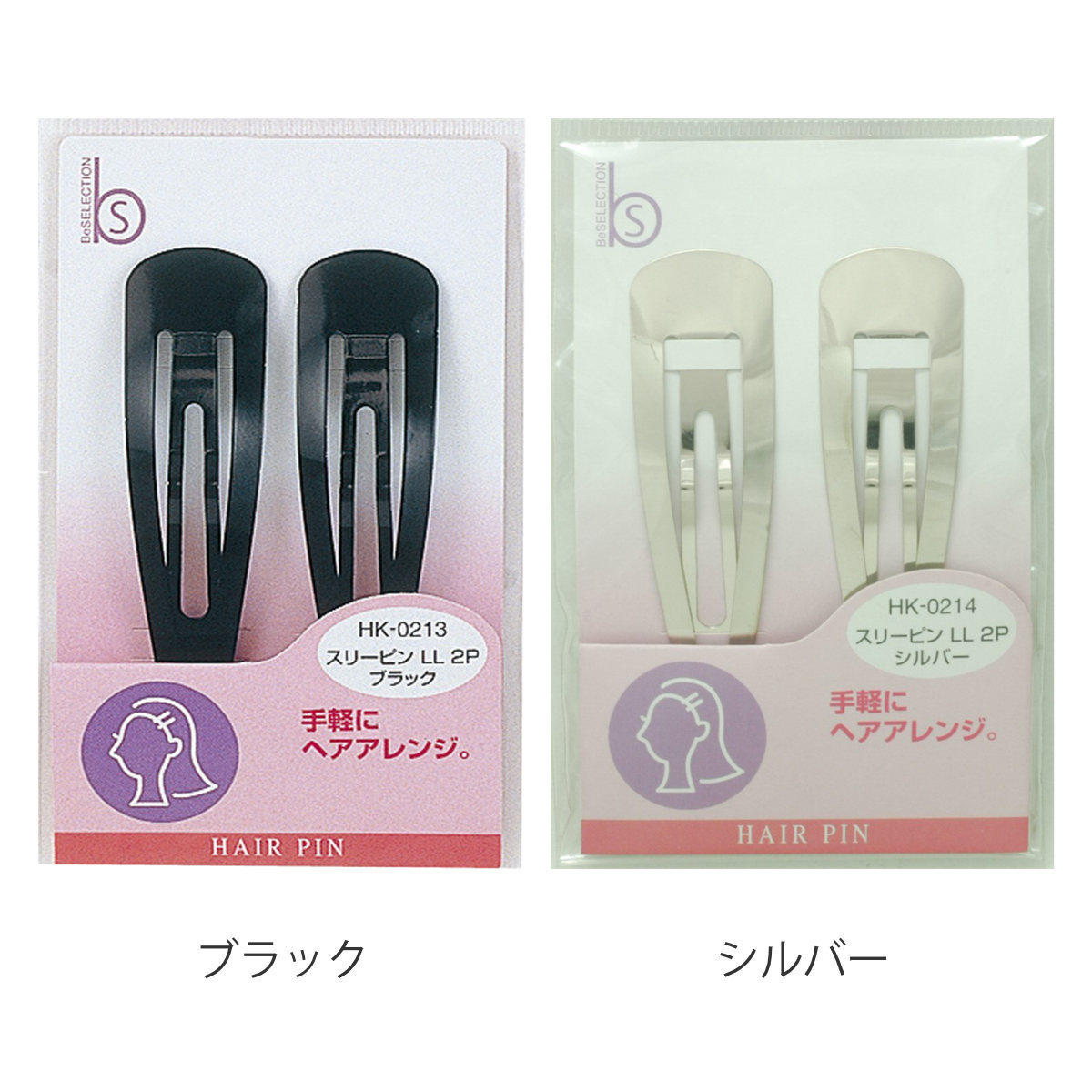 スリーピン LLサイズ 2個入り ( 髪飾り 髪留め パッチンどめ ヘアピン まとめ髪 ヘアアレンジ アクセサリー ヘアアクセ 髪の毛 髪 おくれ毛 前髪 サイド シンプル スタイル ) 【ブラック】