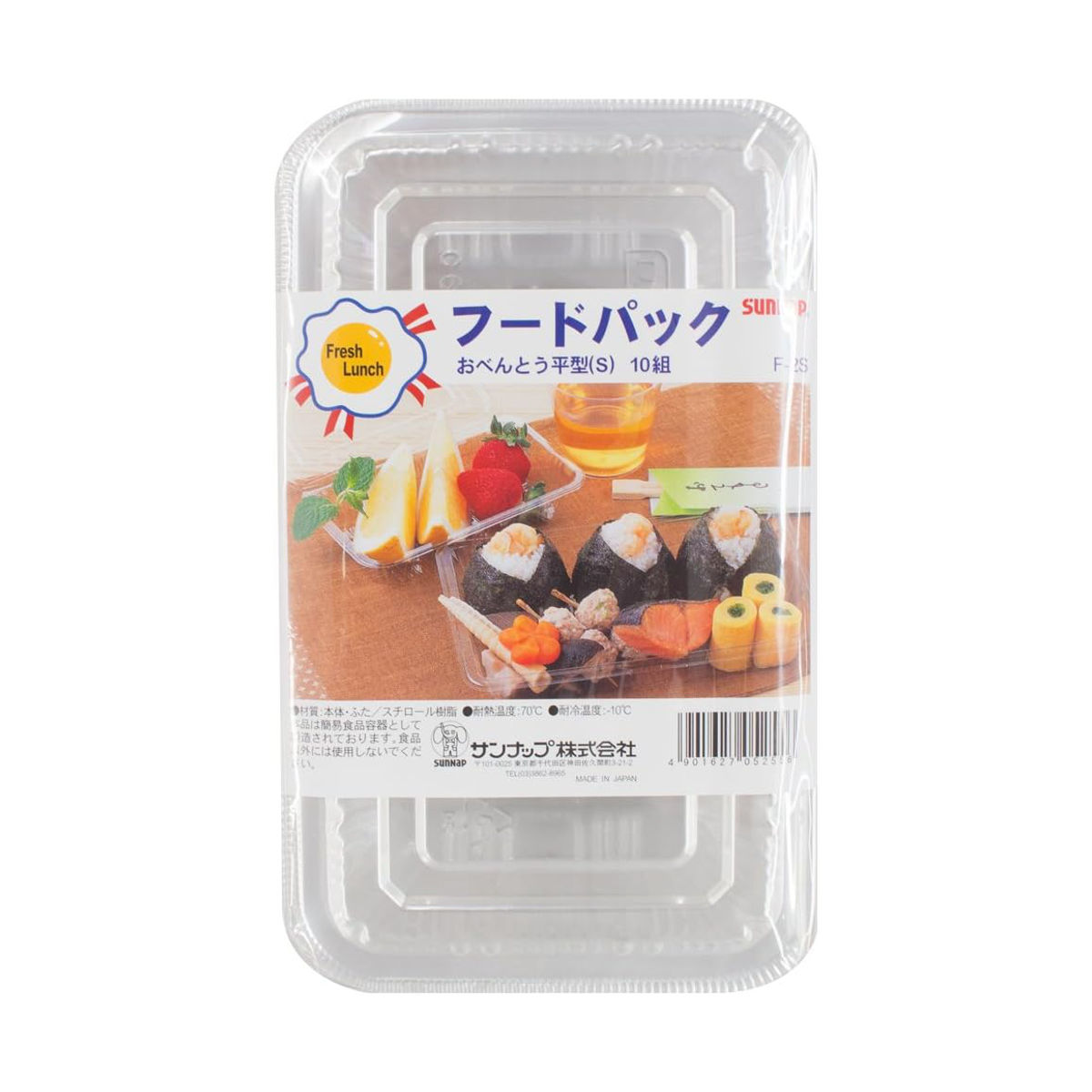 フードパック 10個入 お弁当 平型 S ( プラスチック容器 透明 パック 容器 使い捨て 10個 弁当箱 ランチボックス お弁当箱 おにぎり 蓋付き 蓋 ふた ふた付き 日本製 )